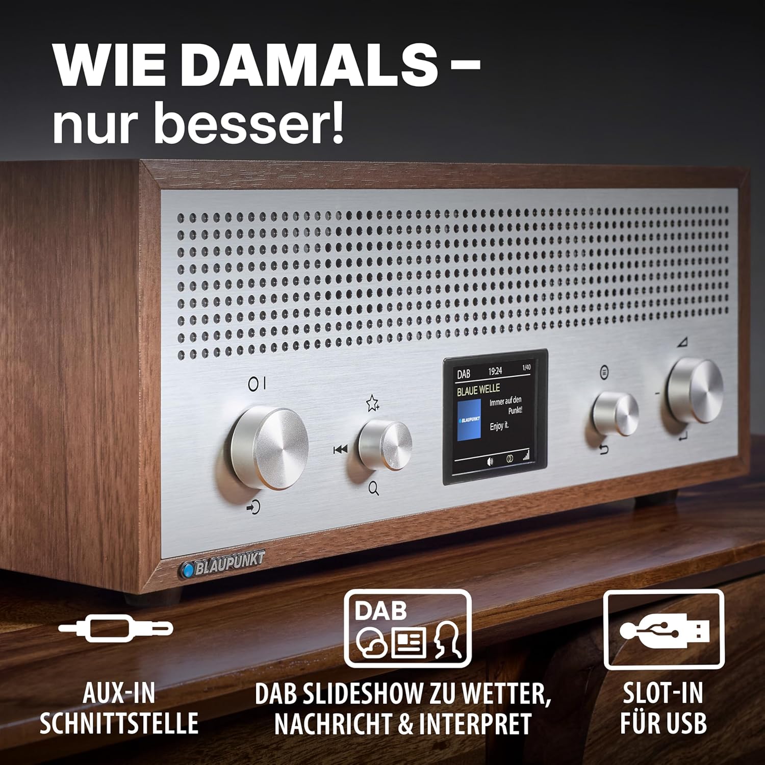 - WAS SIE ERHALTEN: Blaupunkt Nostalgieradio mit 15 Watt (RMS) Ausgangsleistung mit 2-Wege-Lautsprecher-System und beleuchtetem LC-Display. Das Ganze wird mit einem Netzteil, Bedienungsanleitung sowie Garantiekarte geliefert.