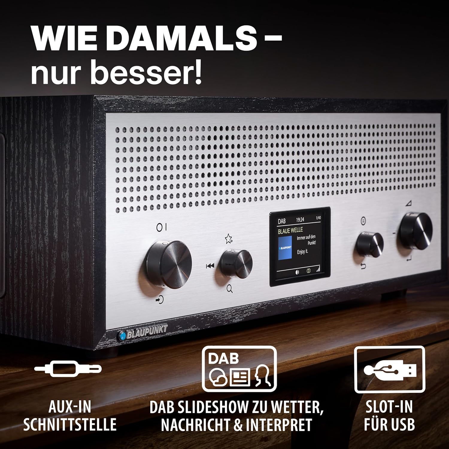 - WAS SIE ERHALTEN: Blaupunkt Nostalgieradio mit 15 Watt (RMS) Ausgangsleistung mit 2-Wege-Lautsprecher-System und beleuchtetem LC-Display. Das Ganze wird mit einem Netzteil, Bedienungsanleitung sowie Garantiekarte geliefert. Zudem erhalten Sie