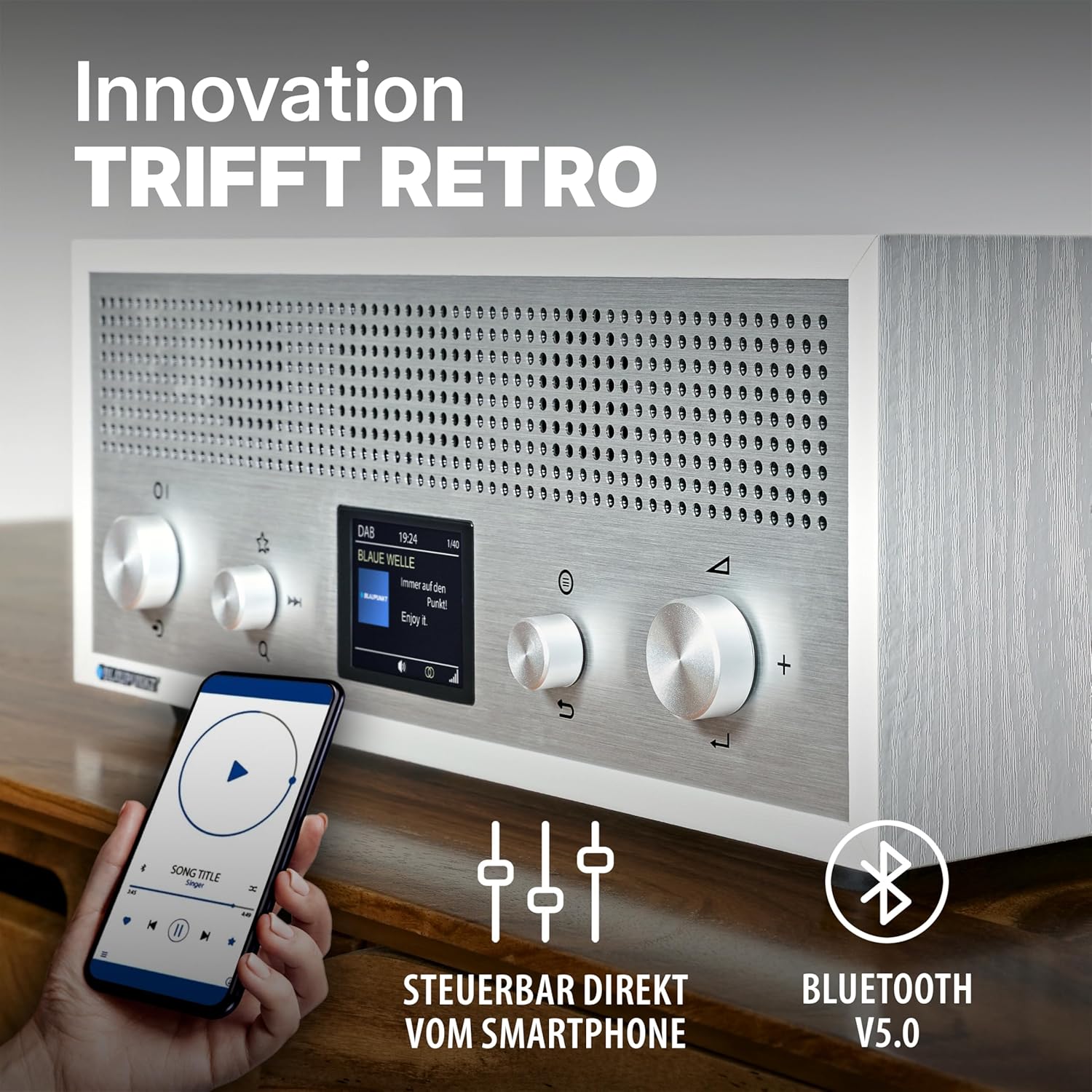 - WAS SIE ERHALTEN: Blaupunkt Nostalgieradio mit 15 Watt (RMS) Ausgangsleistung mit 2-Wege-Lautsprecher-System und beleuchtetem LC-Display. Das Ganze wird mit einem Netzteil, Bedienungsanleitung sowie Garantiekarte geliefert.
