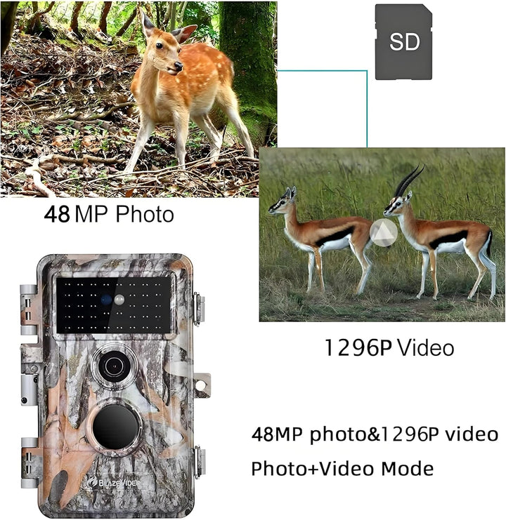 - 24MP FOTOS 1296P VIDEO & PIRFUNKTION: Aufnahme von max 24MPBilder und 1296PVideos bei Bewegungserkennung (monochrom bei Nacht) Im Cam+Videomodus könnten Bilder und Videos bei jedem Auslöser zusammenarbeiten SDKartenunterstützung bis zu 512 GB (nicht