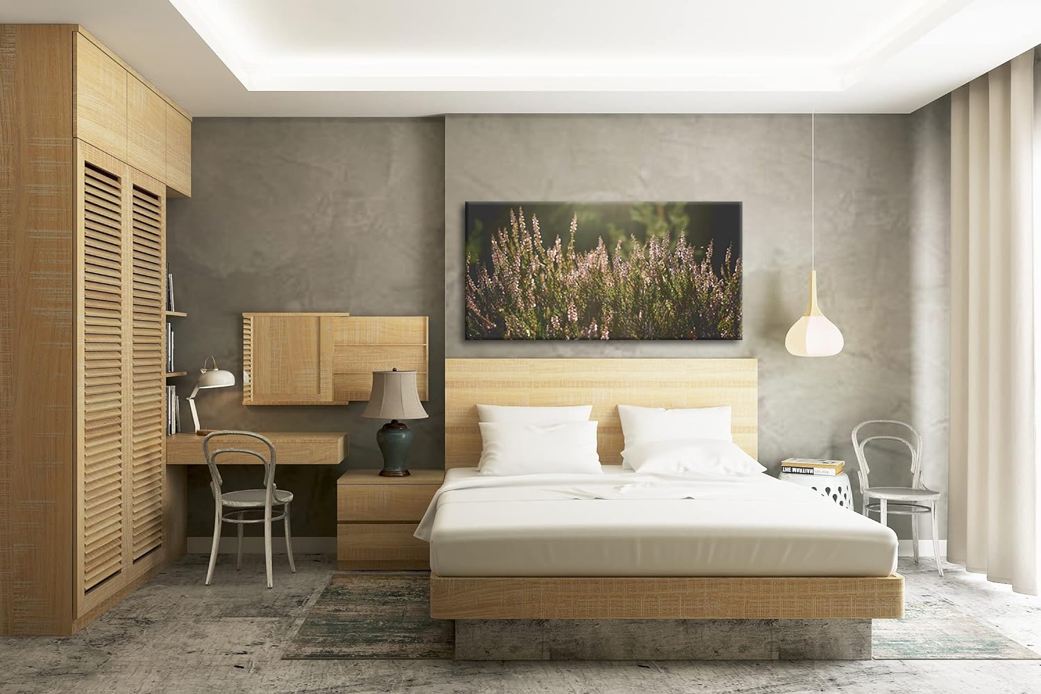 blühende Gräser Panorama 60x30 cm als Leinwandbild, Motiv fertig gerahmt auf Echtholzrahmen, Hochwer