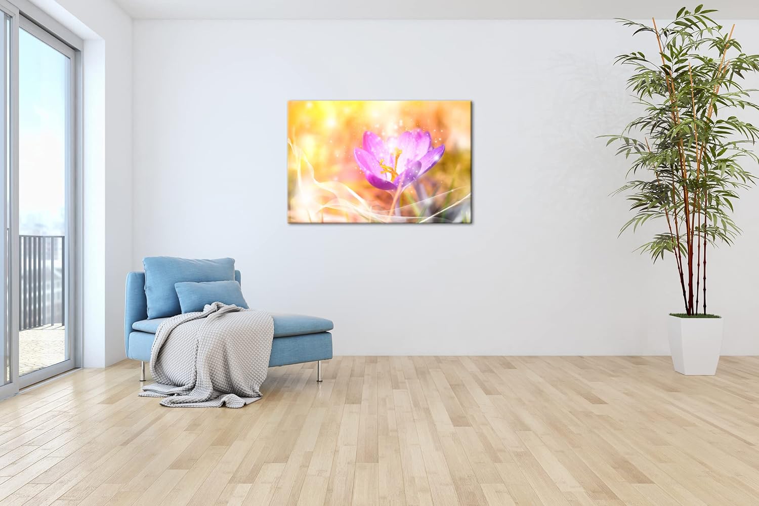 deyoli blühender frühlings Krokus Format: 80x60 als Leinwandbild, Motiv fertig gerahmt auf Echtholzr
