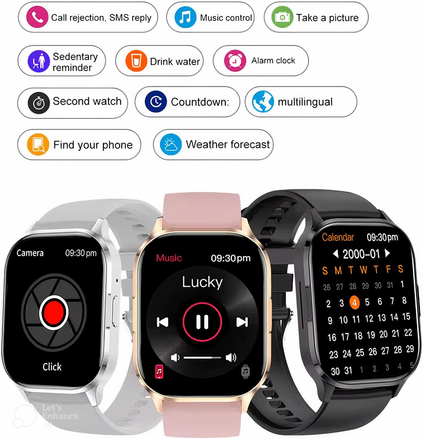 - 📞 [Telefonfunktion & Benachrichtigungen ] Der Lautsprecher und das Hochleistungsmikrofon ermöglichen es Ihnen, Anrufe auf Ihrer Smartwatch zu tätigen, ohne Ihr Telefon herausnehmen zu müssen. Sie können eingehende/ausgehende Anrufe annehmen und