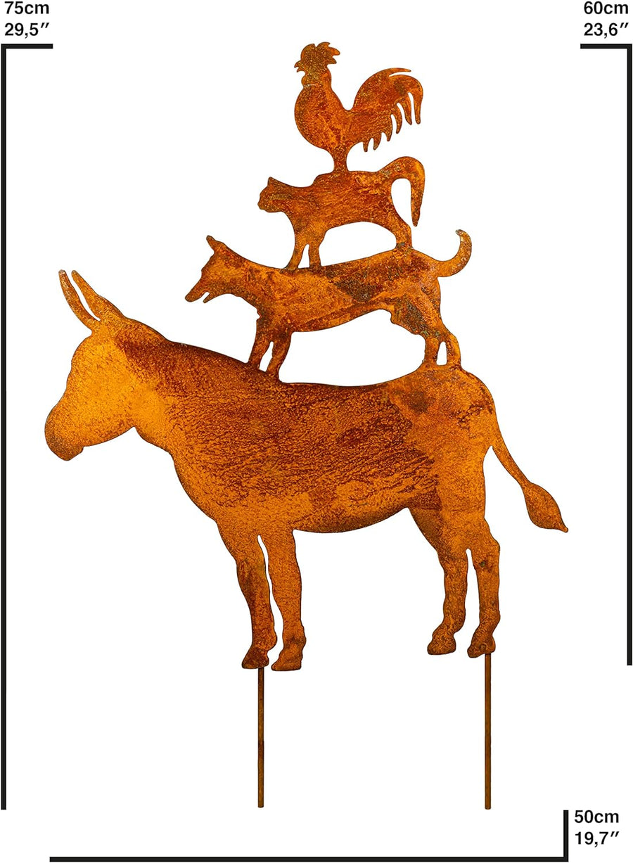 - Die Bremer Stadtmusikanten vereinen Esel, Hund, Katze und Hahn als beste Freunde und erfreuen Jung und Alt gleichermassen. Wer Märchen Filme mag wird diese Metall Deko lieben!