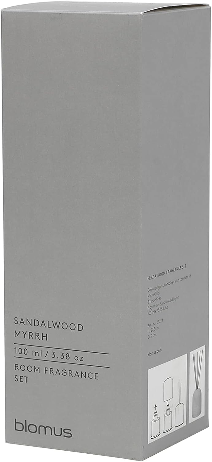 - Lieferumfang: 1x Duftspender, 100 ml Duft Sandalwood Myrrh, 5 Stäbchen. Masse H 27,5 cm, Ø 9 cm, V 0,1 L, Aus dem Traditionsunternehmen Blomus