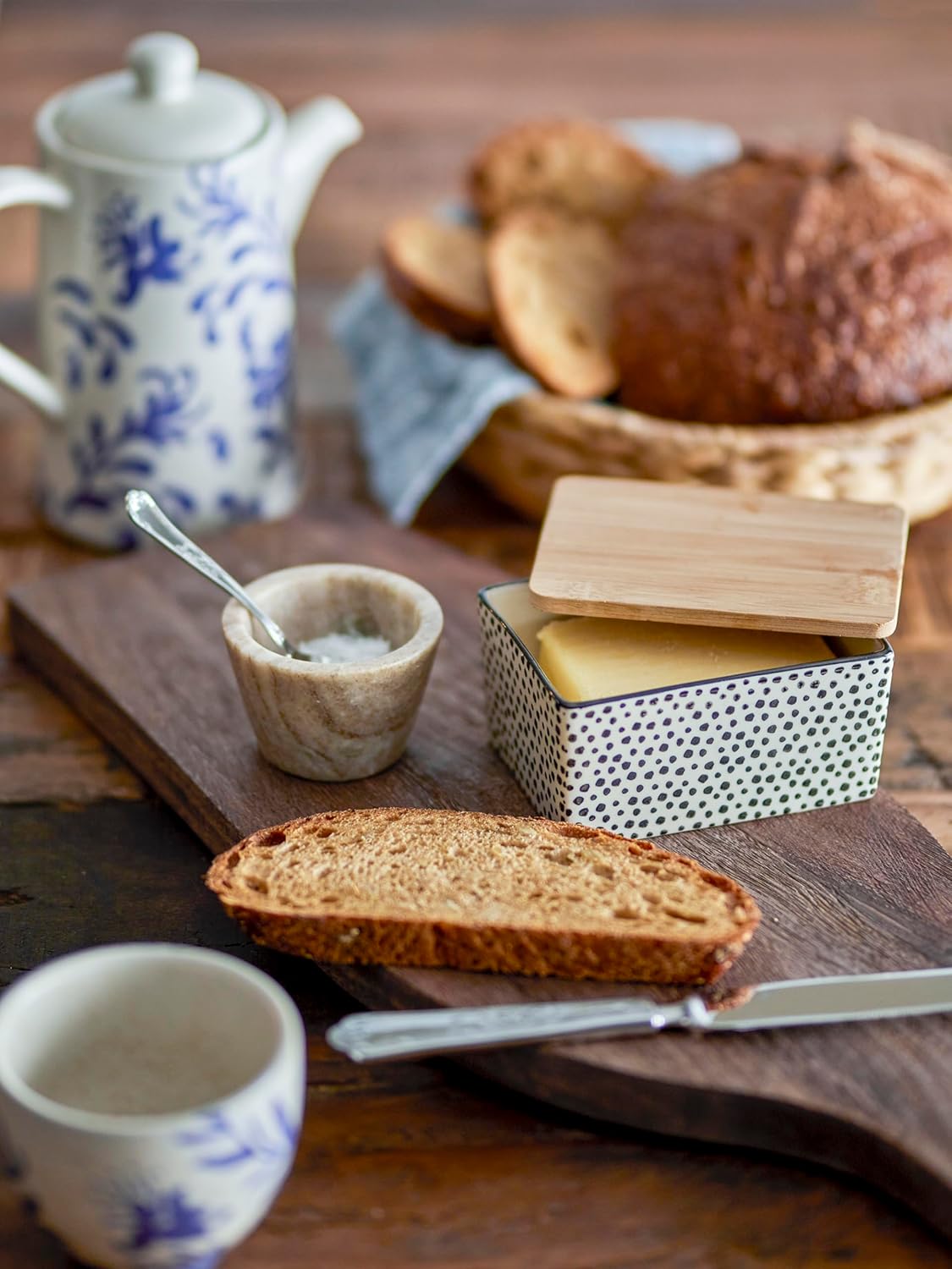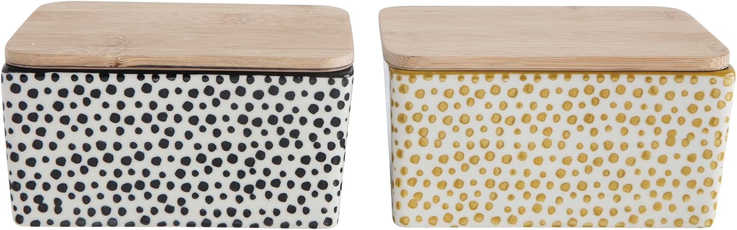 - Lieferumfang: 1 x Bloomingville Poppy 82044641 Butterdose 2-Set aus Steingut in den Farben Gelb und Schwarz mit Bambusdeckel - Fassungsvermögen: 325 ml