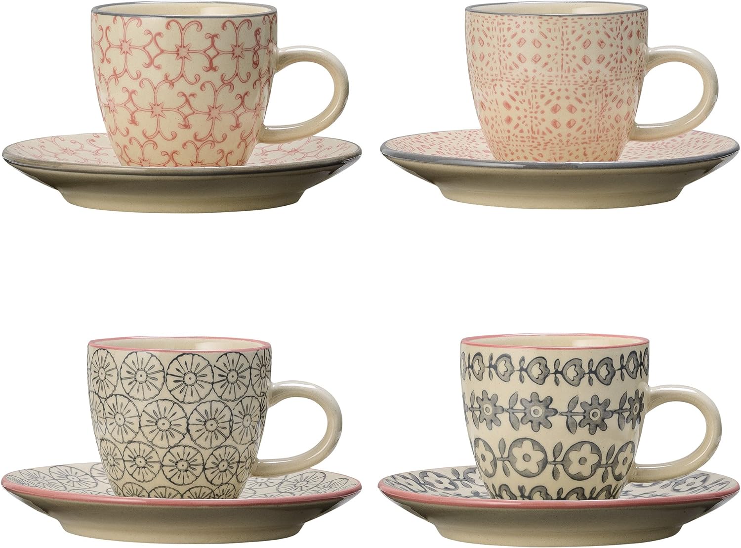 Bloomingville Espressotasse mit Untertasse Cecile, rosa grau, Keramik, 4er Set