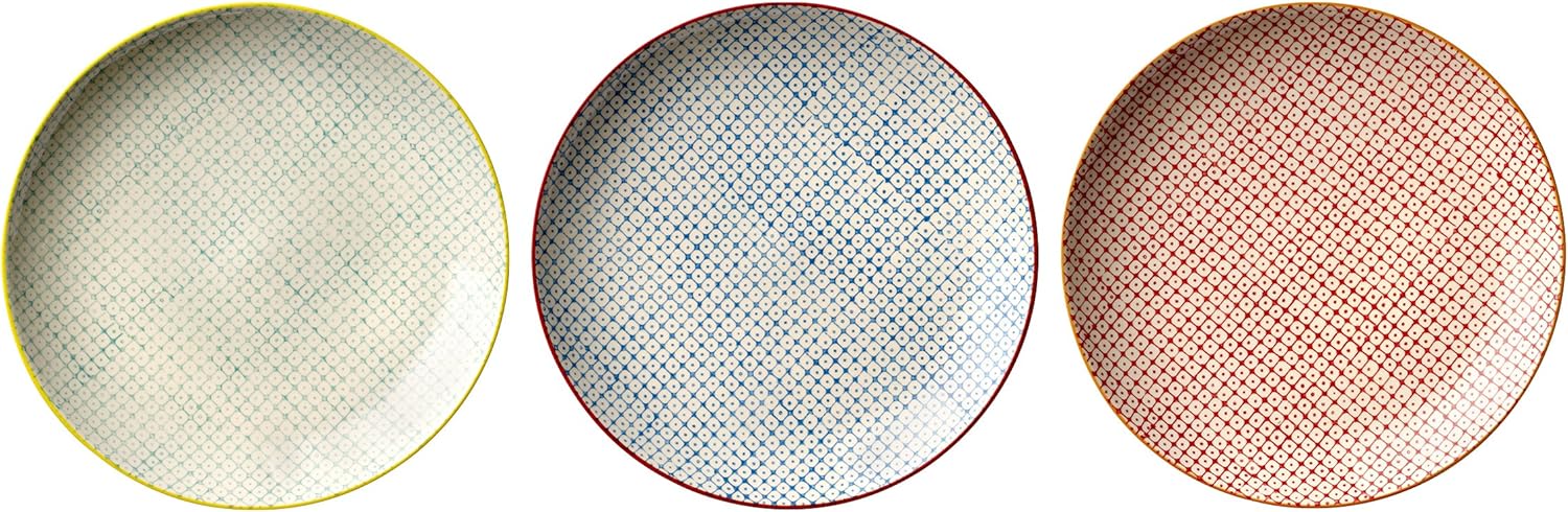 Bloomingville Teller Carla, rot blau grün, Keramik, 3er Set 25 cm Rot Blau Grün, 25 cm Rot Blau Grün