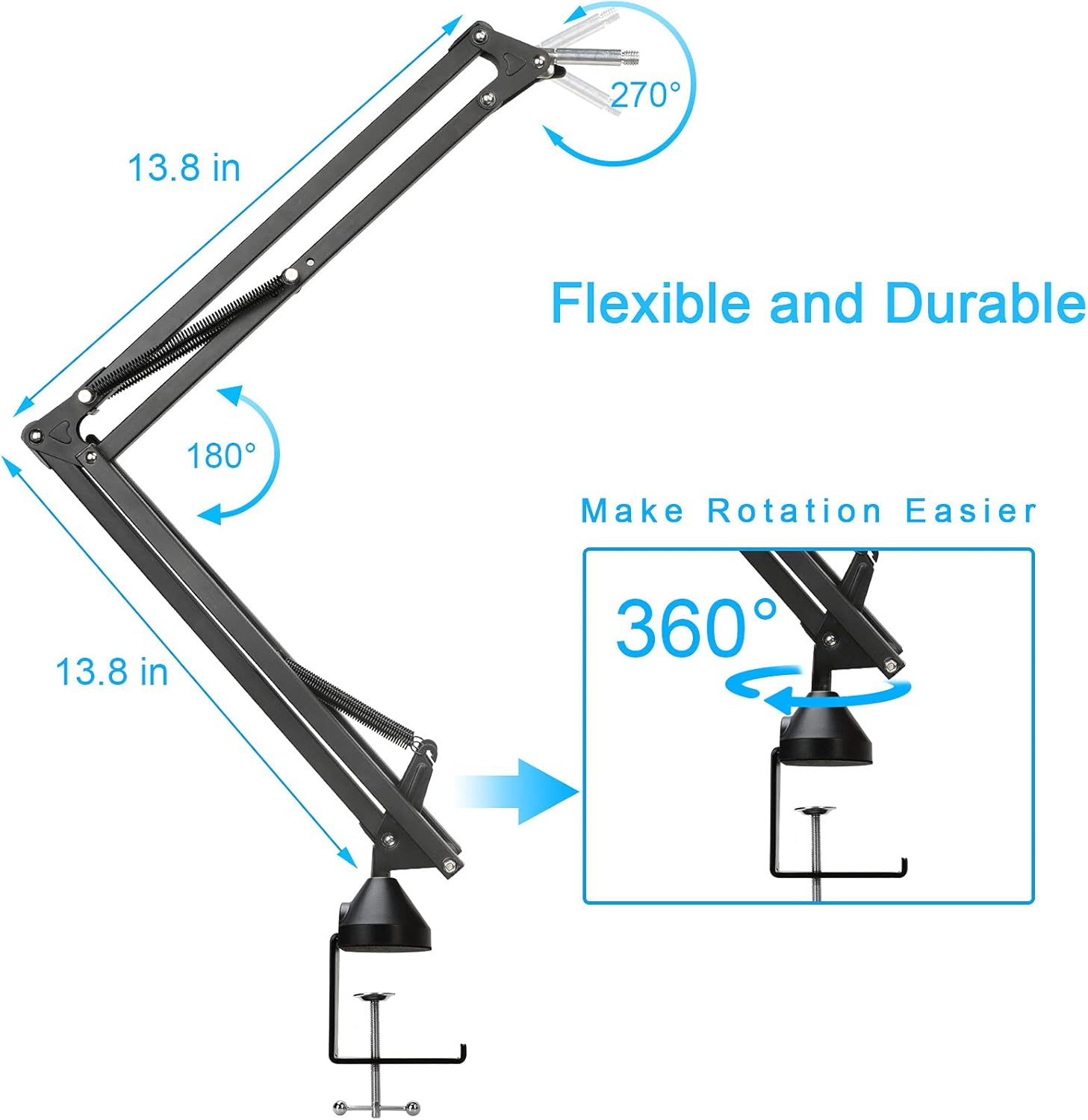 - [Mikrofonständer]: Die fettdruckfeder schützt das mikrofon vor wackeln, plötzlichem herunterfallen und geräuschen. Der mikrofonständer kann das mikrofon in jeder gewünschten position halten.