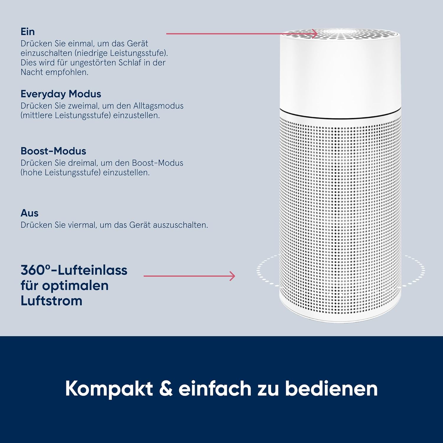 - SAUBERE LUFT IN MINUTEN: Die HEPASilent-Technologie von Blueair sorgt für saubere Luft, schneller und viel leiser als die herkömmliche HEPA-Filterung allein; reinigt schnell 43 m2 kleinen Raum in etwa 30 Minuten oder bis zu 86 m2 Raum in 60 Minuten,
