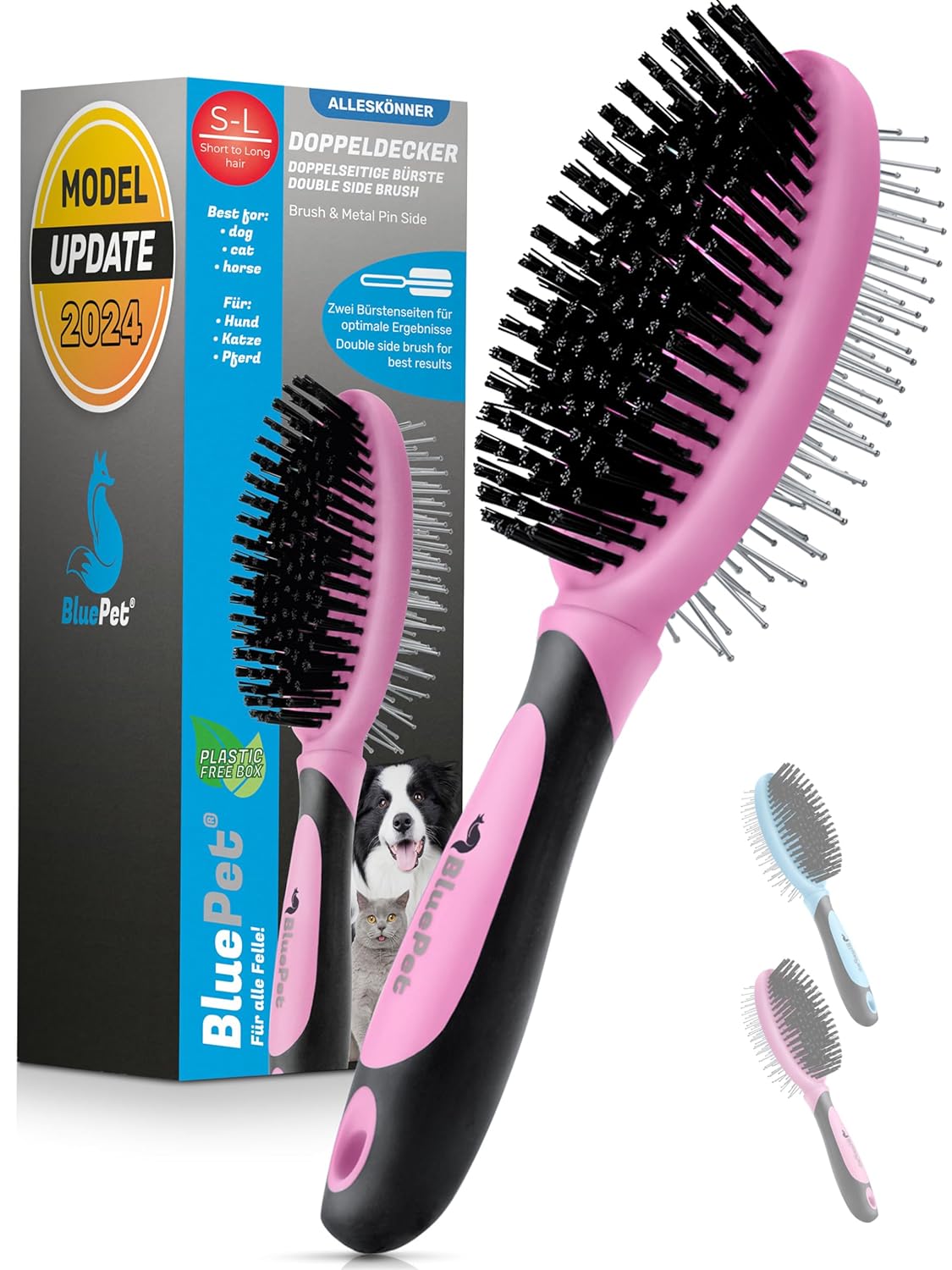 BluePet 2in1 Hundebürste für Langhaar & Kurzhaar Auch für Welpen & Katzen I Glätten, Entwirren, Ausb