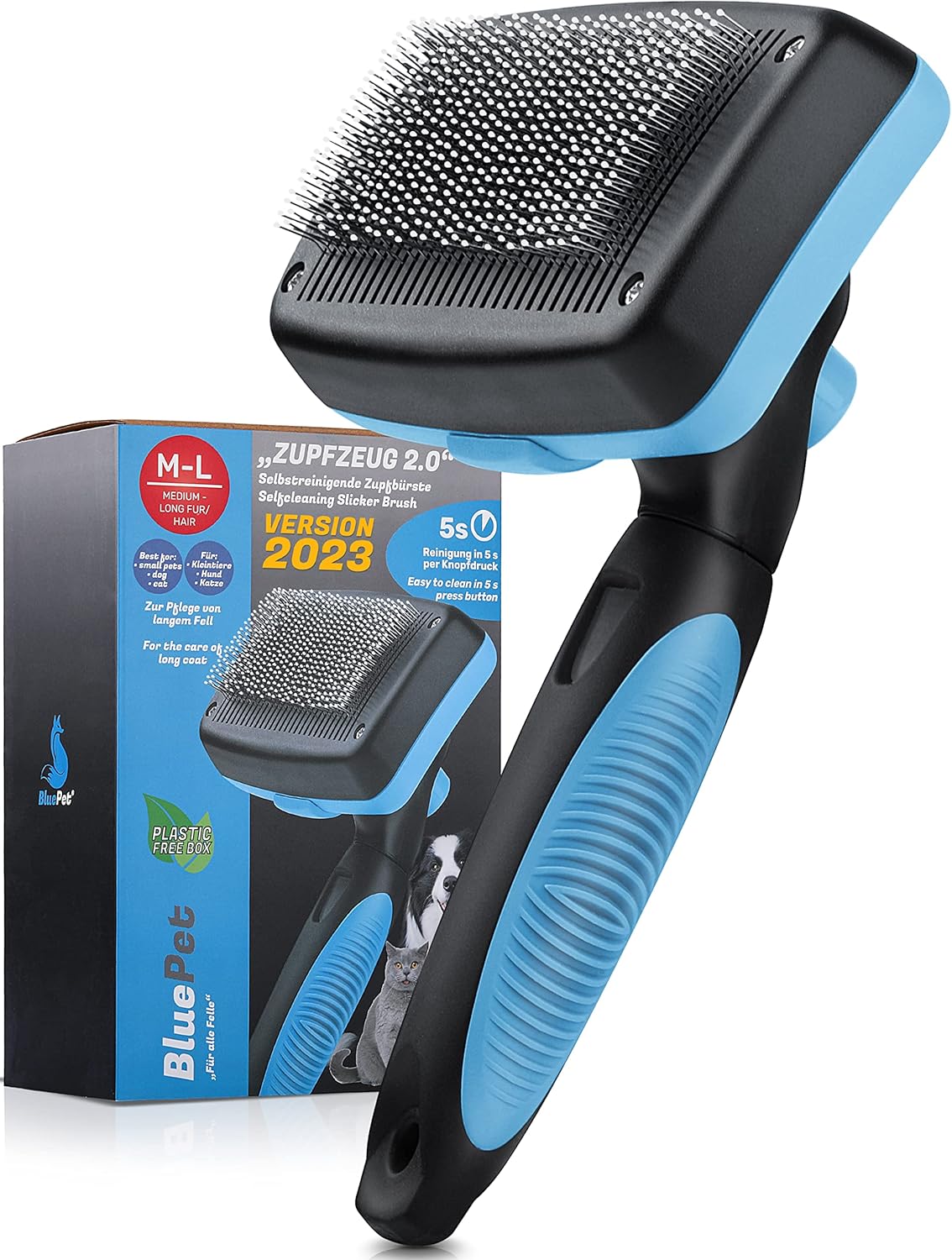 - 🔵 NEUE VERSION 2023 = Bei BluePet nehmen wir Kundenfeedback sehr ernst. Die überarbeitete Version der Zupfbürste wurde mit Schutznoppen auf den Bürstenpins ausgestattet. Die Verbindung vom Griff und dem Bürstenkopf wurde verstärkt und ist jetzt