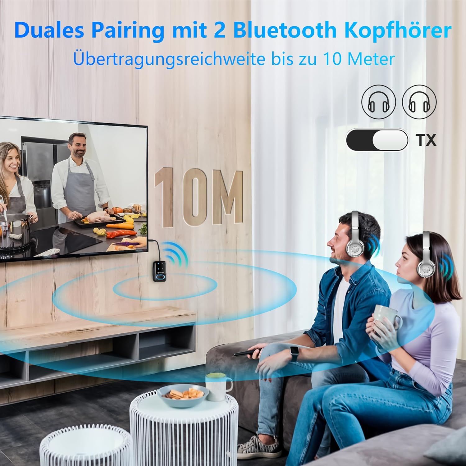 - Duale Konnektivität & Speicherfunktion: Im TX Modus kann der Bluetooth Sender mit zwei Bluetooth Lautsprechern oder Bluetooth Kopfhörern gleichzeitig verbunden werden; Im RX Modus kann der Bluetooth Empfänger mit zwei Smartphones oder Computern