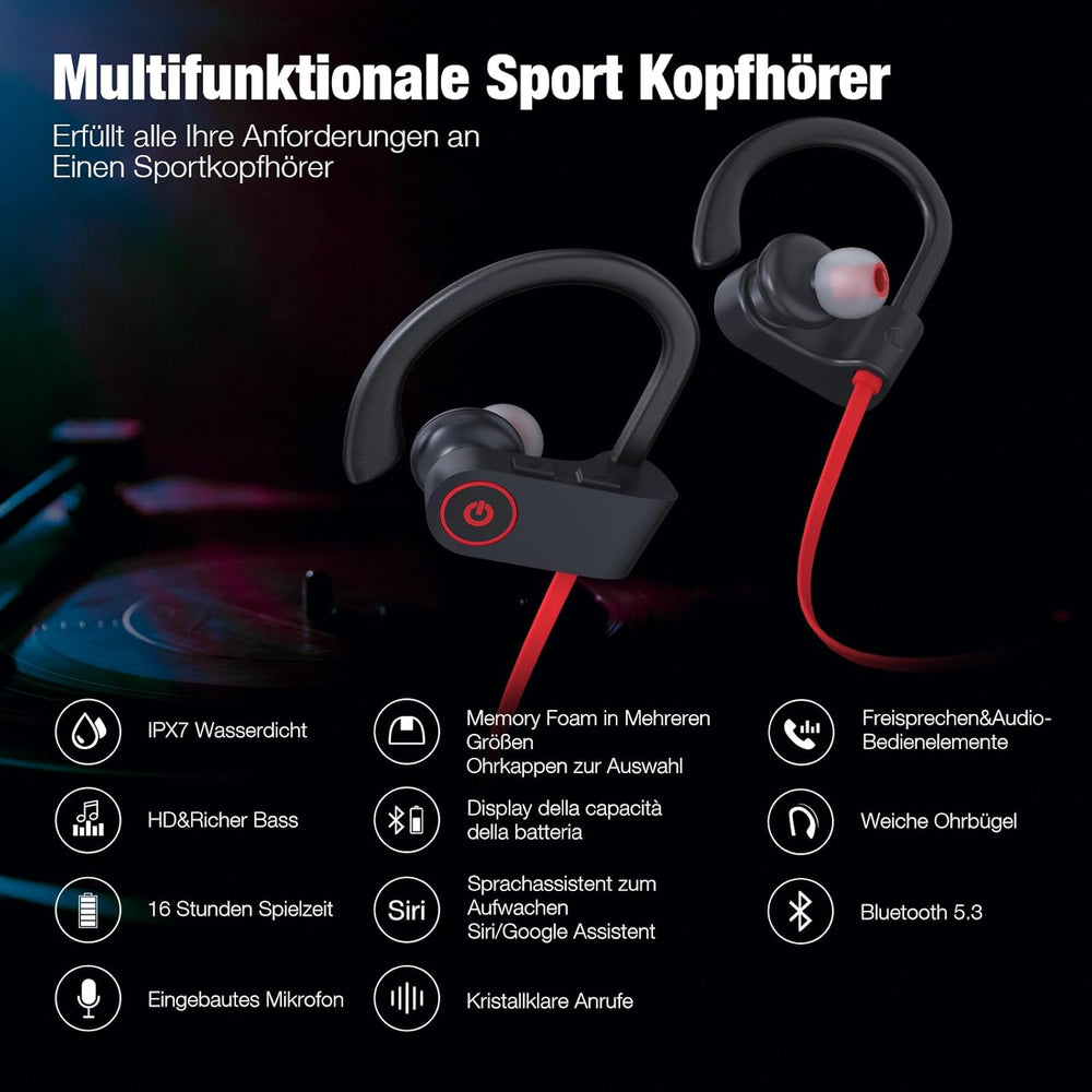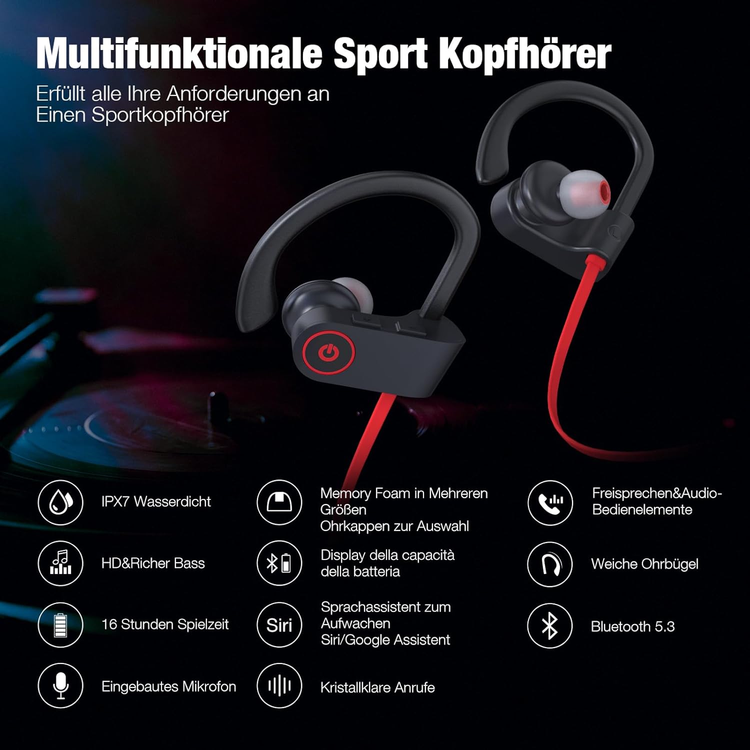 - 【Schnelle und Stabile Verbindung】Das kopfhörer kabellos sport nimmt Bluetooth 5.3 Technologie, um eine schnelle und stabile Verbindung mit Ihrem Gerät zu erreichen, nicht leicht aus der Linie zu fallen, und der Verbindungsabstand ist breiter, die