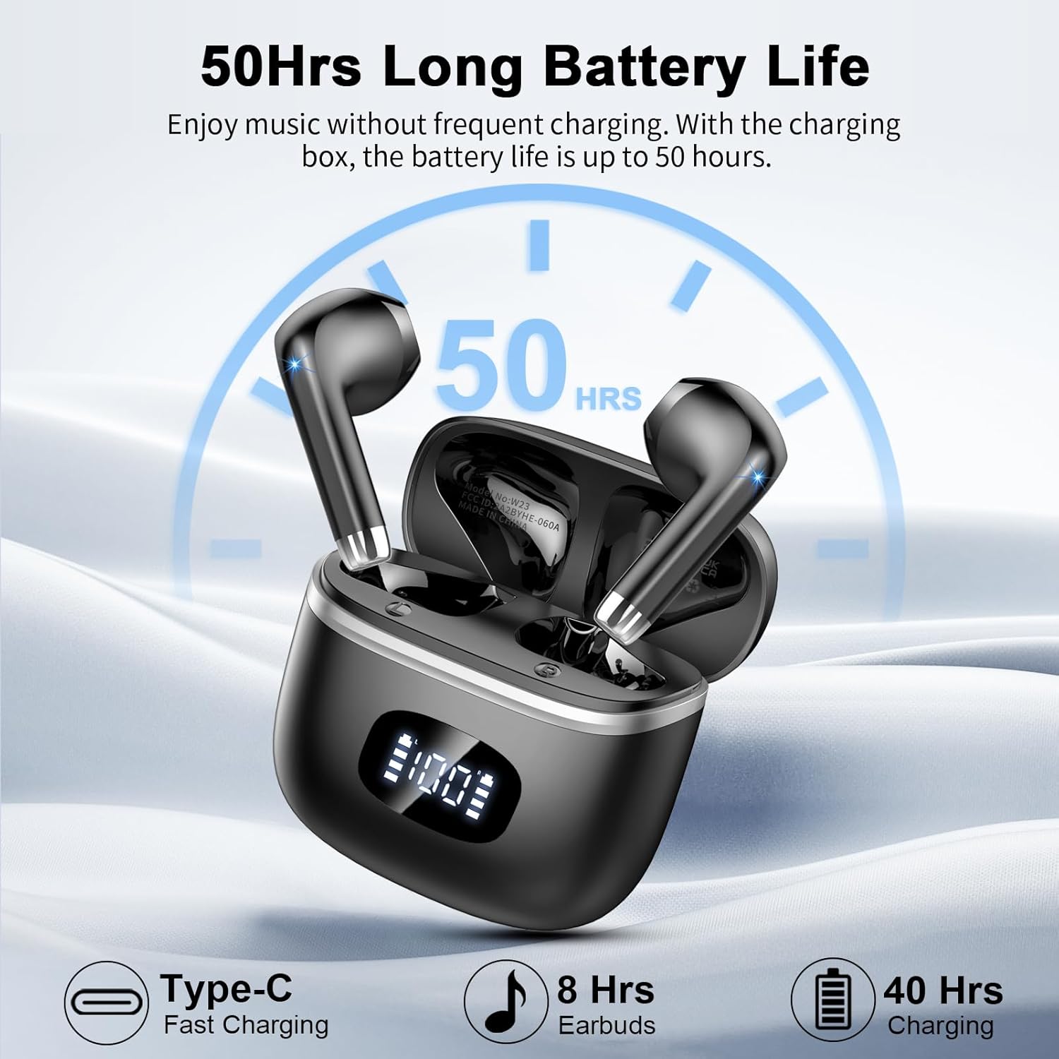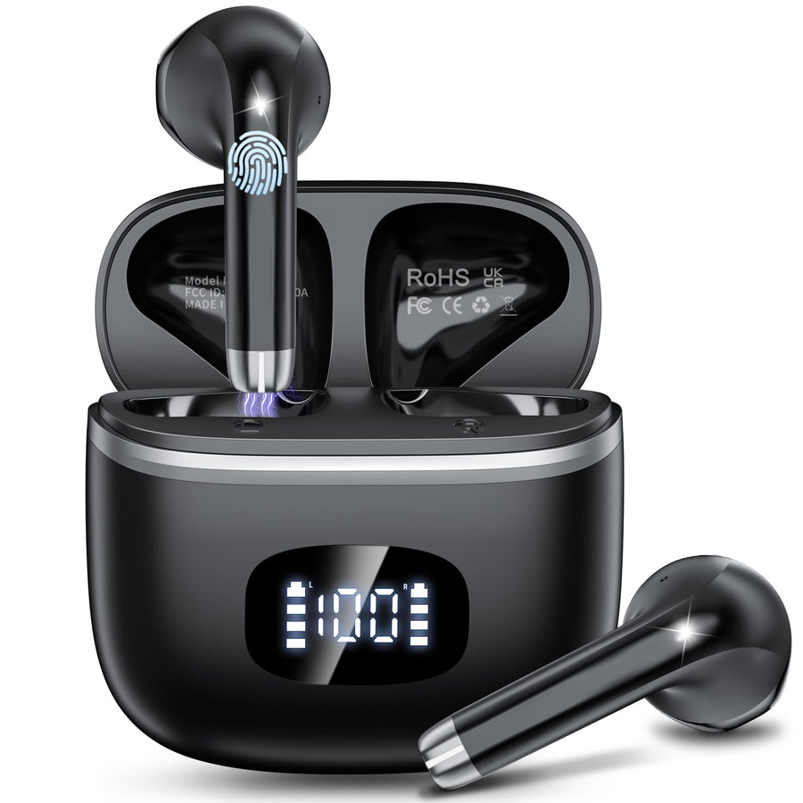 - LED-Anzeige und 40 Stunden Wiedergabezeit: Das digitale LED-Display auf der Ladebox zeigt in Echtzeit die verbleibende Ladung der Ladebox und der kabellosen Kopfhörer an und zeigt auch den Ladezustand der kabellosen Kopfhörer bei Verwendung des