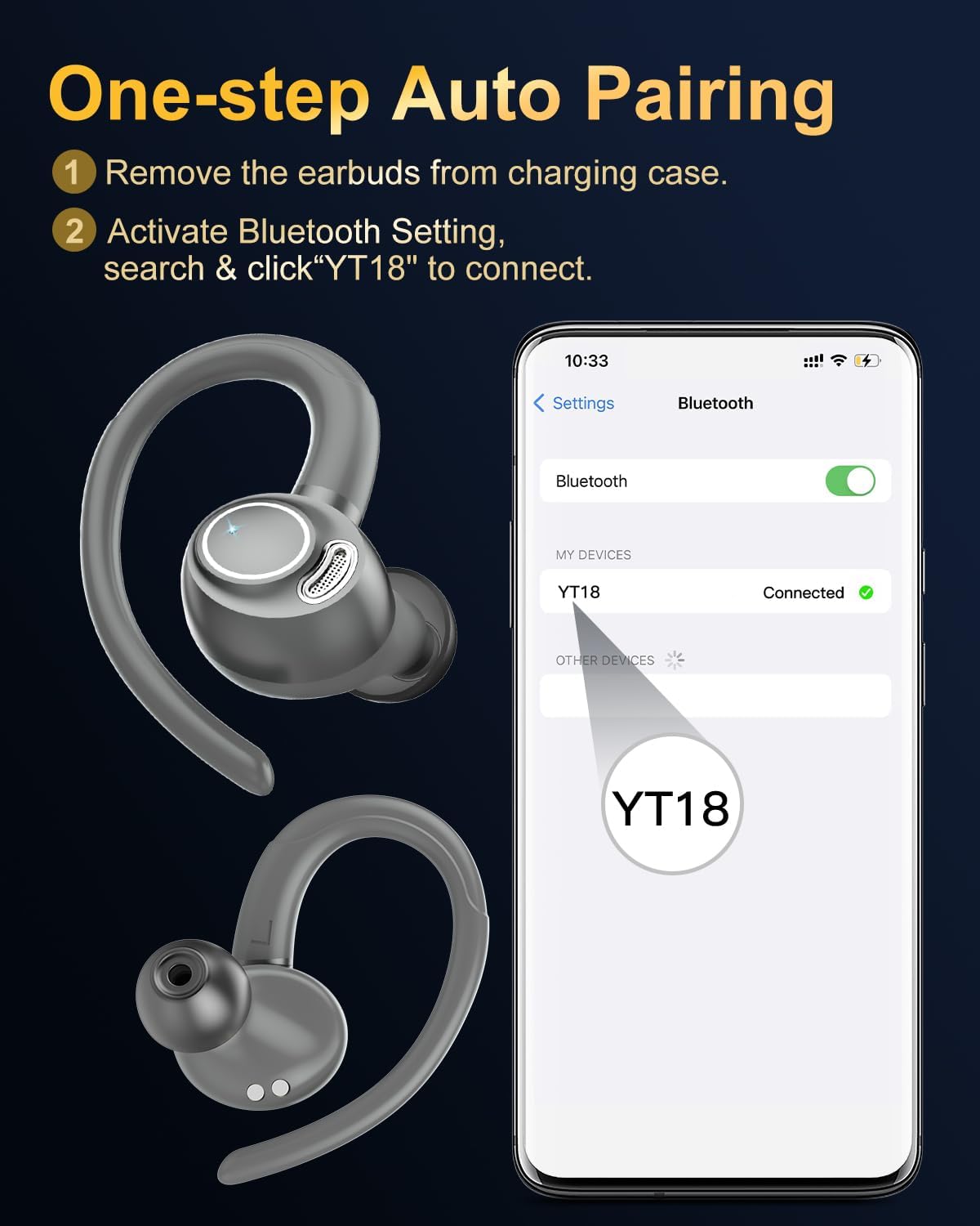 - Sport Ohrhaken-Design: Ausgestattet mit 3 Paar Silikon-Ohrstöpseln unterschiedlicher Grösse sind die wireless kopfhörer ergonomisch geformt, sehr stabil und leicht. Das weiche Ohrhaken-Design (mit elastischer Elastizität) lässt die kopfhörer immer