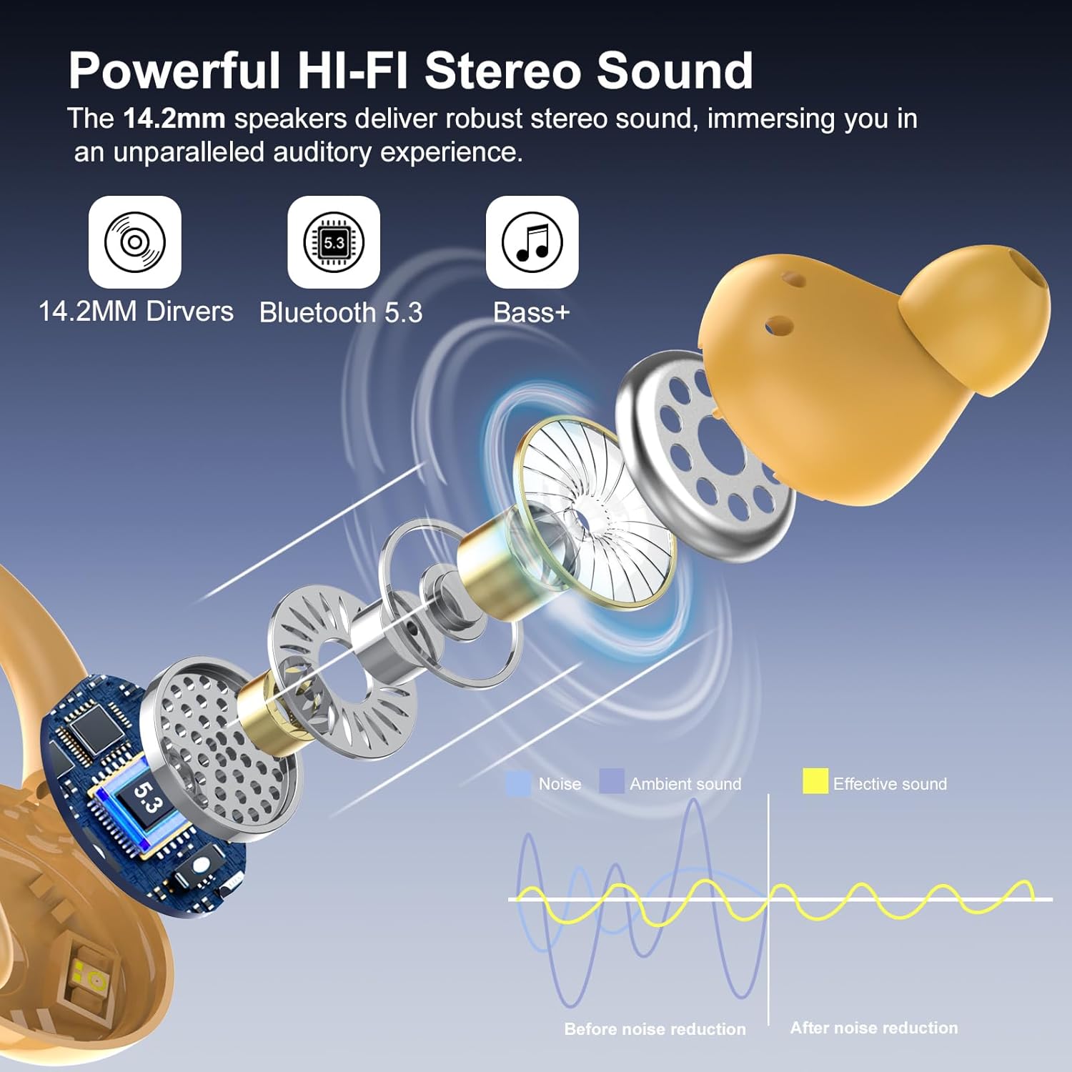 - Nahtlose Verbindung: Diese bluetooth kopfhörer verwenden die fortschrittliche Bluetooth 5.3-Technologie, die eine doppelte Übertragungsgeschwindigkeit bietet und eine stabilere Verbindung gewährleistet. Geniessen Sie eine sofortige und mühelose