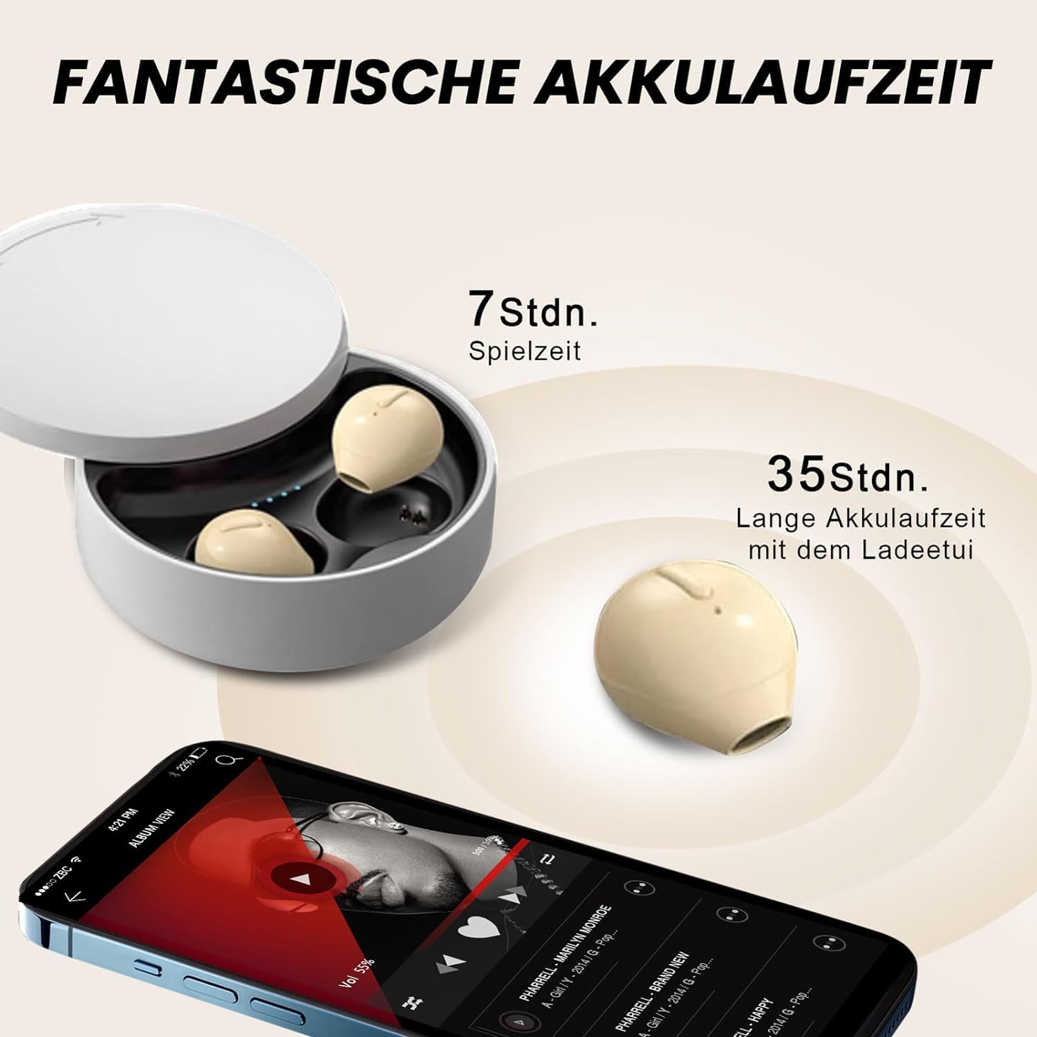 - 🔋【Lange Akkulaufzeit & Tolles Geschenk】 Die Schlafohrhörer können mit einer einzigen vollen Ladung 6-7 Stunden lang Songs hören und das tragbare Ladecase bietet zusätzliche 4-5 Mal, um diese unsichtbaren Ohrhörer mit Strom zu versorgen. Es