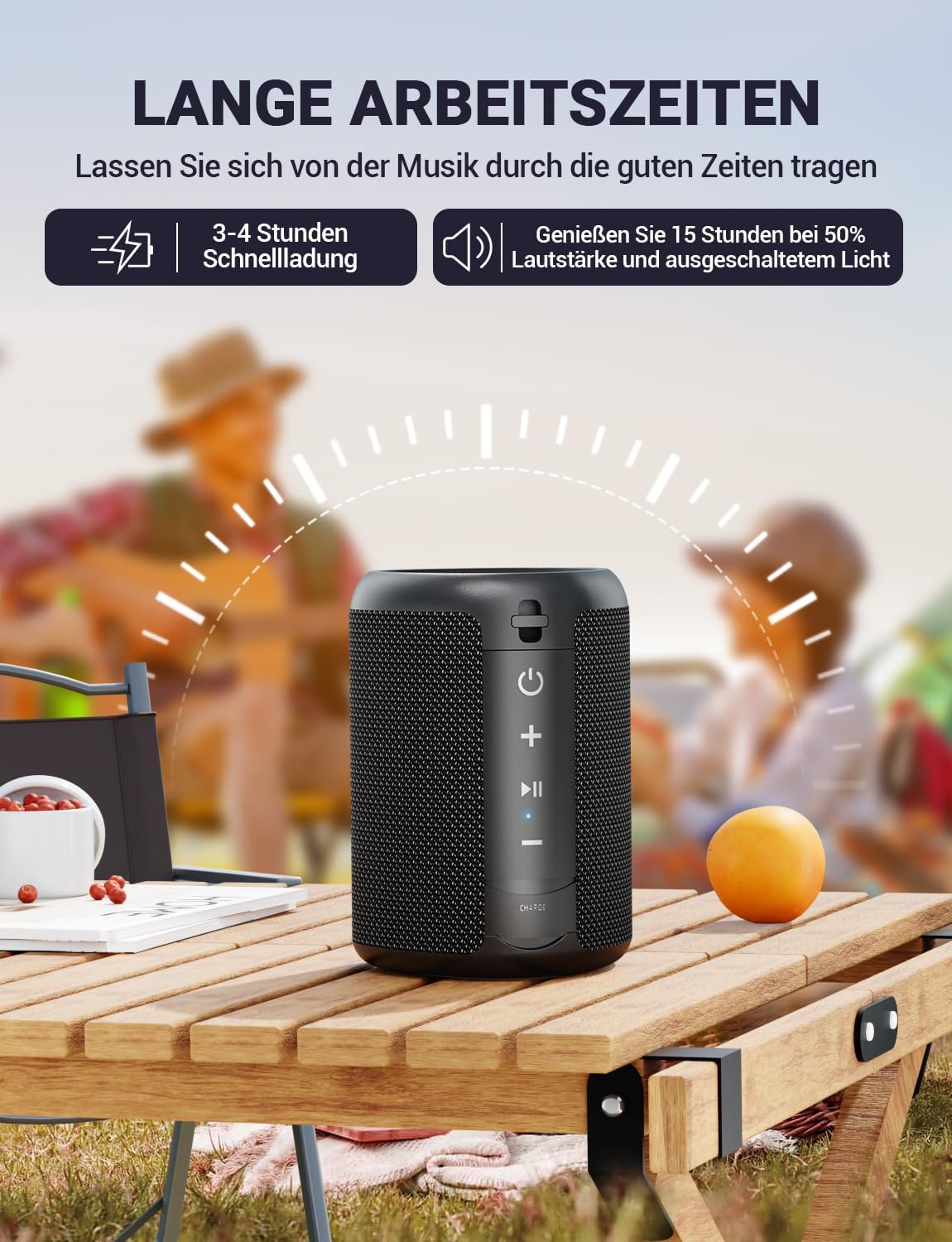 - Wasserdichtes IPX5-Design: Diese IPX5 Musikbox ist spritzwassergeschützt und somit perfekt für den Einsatz am Pool, am Strand oder sogar beim Camping geeignet. Egal, ob Sie durch den Regen wandern oder einen sonnigen Tag am Pool geniessen, Ihre Musik