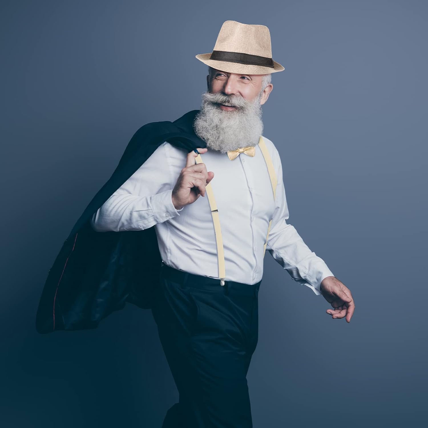 - Klassischer Stil: Ob Tanktop oder Y-Hosenträger, sie sind der klassische Kleidungsstil der 1920er Jahre, die Kettentaschenuhren und die verschiedenen Arten von falschen Bärten sind schönes Kostümzubehör für 1920er Mottopartys