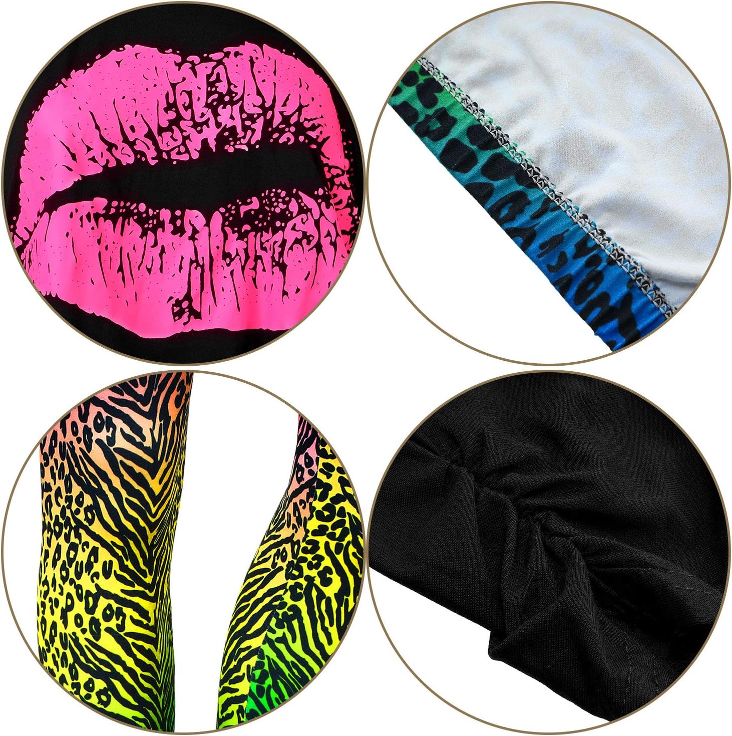 • Das Paket beinhaltet: 1 Stück Kurzarm-T-Shirt mit Lippendruck, 1 Paar atmungsaktive Leggings mit Leopardenmuster, 1 Paar fingerlose Netzhandschuhe, 1 Paar Retro-Neon-Ohrringe, 1 Stück Neon-Halskette, 10 Stück Neon-Silikonarmbänder, vervollständigen