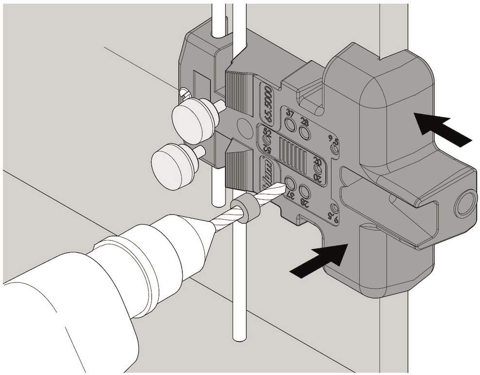 • Zum Bohren der stirnseitigen Befestigungspositionen für BLUMOTION für Türen griffseitig (970.1002) sowie TIP-ON für Türen (956x1004)