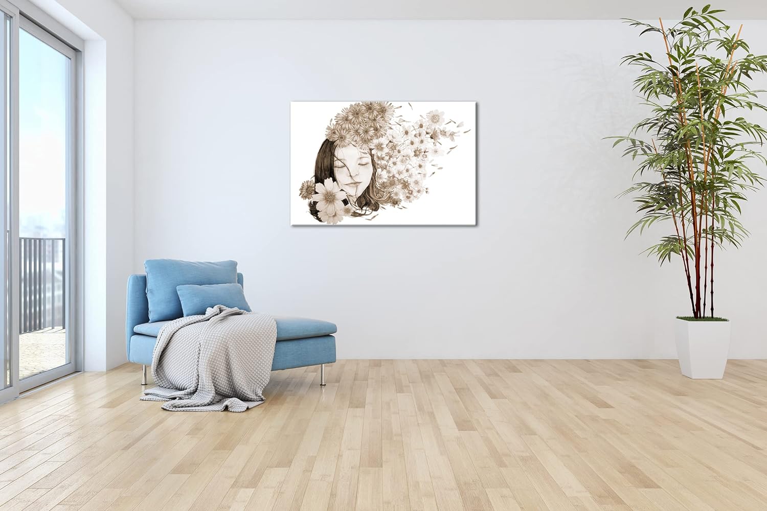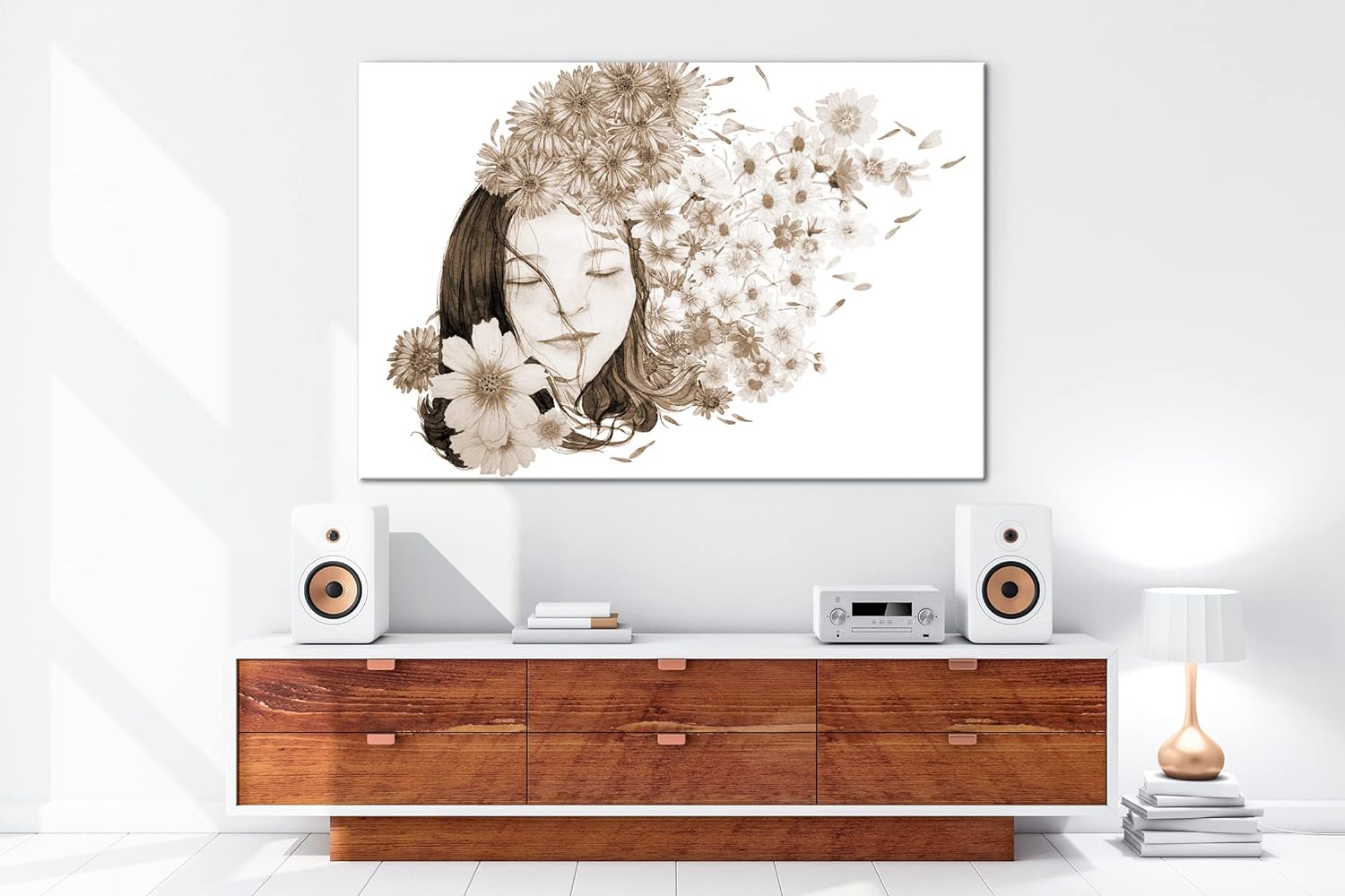 deyoli Blumenmädchen Format: 80x60 Effekt: Sepia als Leinwandbild, Motiv fertig gerahmt auf Echtholz