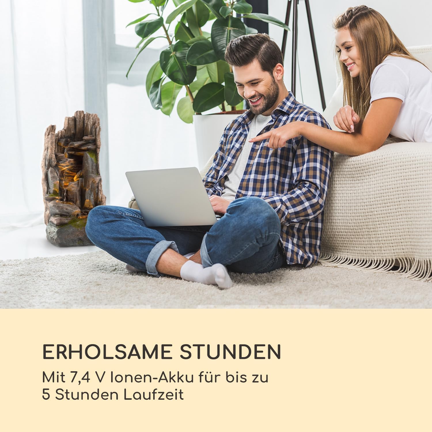 - AKKUS: Durch das leichte Gewicht und das resistente Material kannst du diesen schönen Brunnen im Garten, auf der Terrasse oder in Innenräumen aufstellen, sogar im Winter. Dank des Lithium-Ionen-Akkus läuft er auch, wenn das dazugehörige Solarpanel nicht direkter Sonneneinstrahlung ausgesetzt ist.
