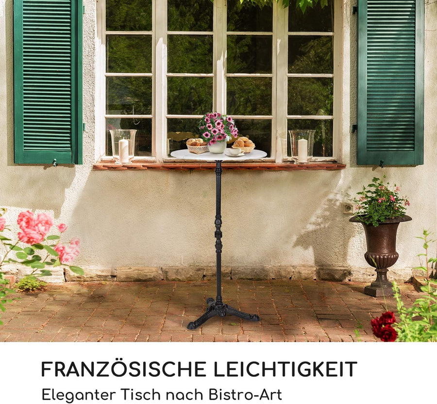 - ALTMODISCHES DESIGN: Wenn der Blumfeldt Patras Bistrotisch zum Platznehmen einlädt, fühlt man sich zurückversetzt: Schon Anfang des 20. Jahrhunderts haben die Tische das Erscheinungsbild von Bistros in Frankreich geprägt.
