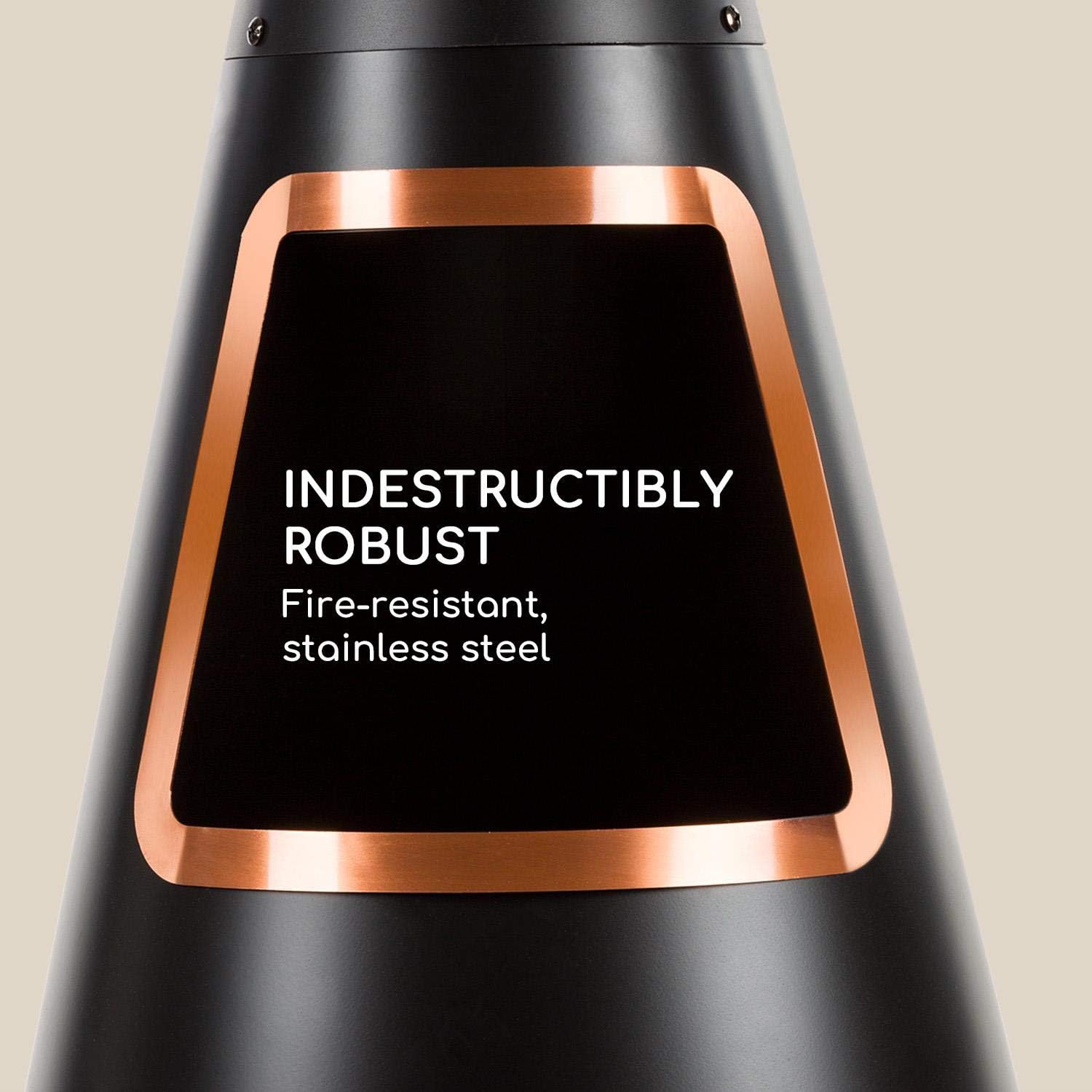 • HINGUCKER: Dank seines edlen Designs mit kupferfarbenen Elementen heizt der Volantis Cupric Terrassenofen nicht nur kräftig ein, er verleiht den Stunden im Freien auch eine einzigartige Atmosphäre und wird an jedem Ort zum modernen Blickfang.