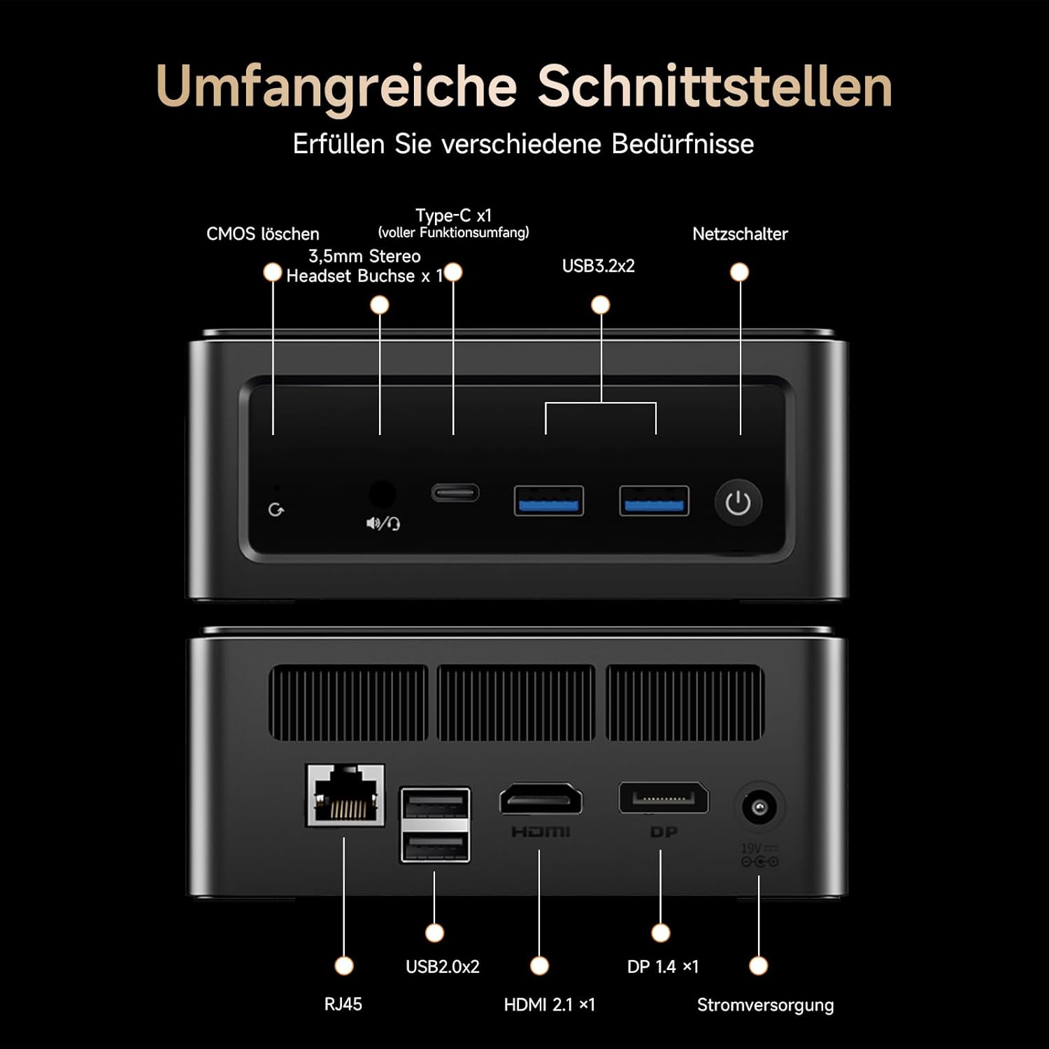 - ✅【WiFi 6 & Bluetooth 5.2】 Ausgestattet mit dual-band WiFi 6 (2,4 GHz + 5 GHz) und Bluetooth 5.2 bietet er ultraschnelle und stabile drahtlose Verbindungen. Die vielseitigen Anschlüsse umfassen USB 3.2 (x2), USB 2.0 (x2), HDMI 2.1, DisplayPort