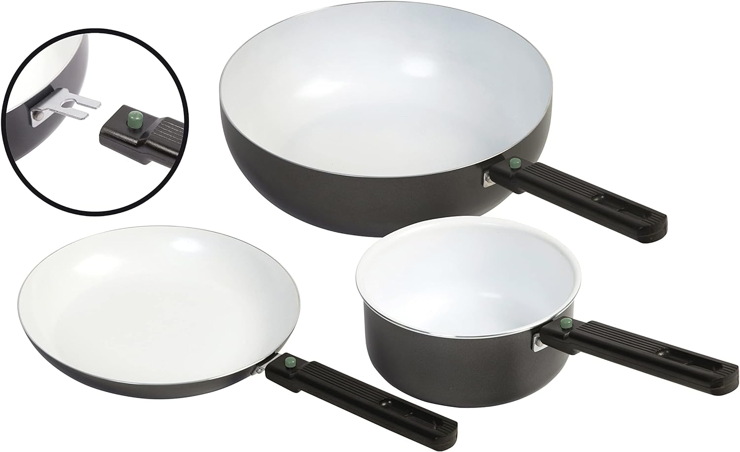 - Der abnehmbare Griff sorgt dafür, dass die Pfanne kompakt zu verstauen ist.