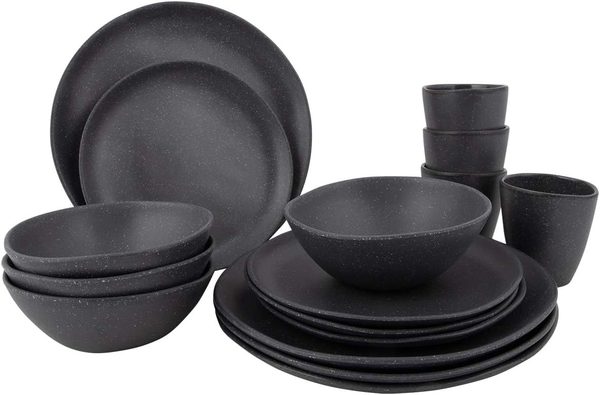 - Ein robustes Geschirrset in Steinoptik aus 100% Melamin