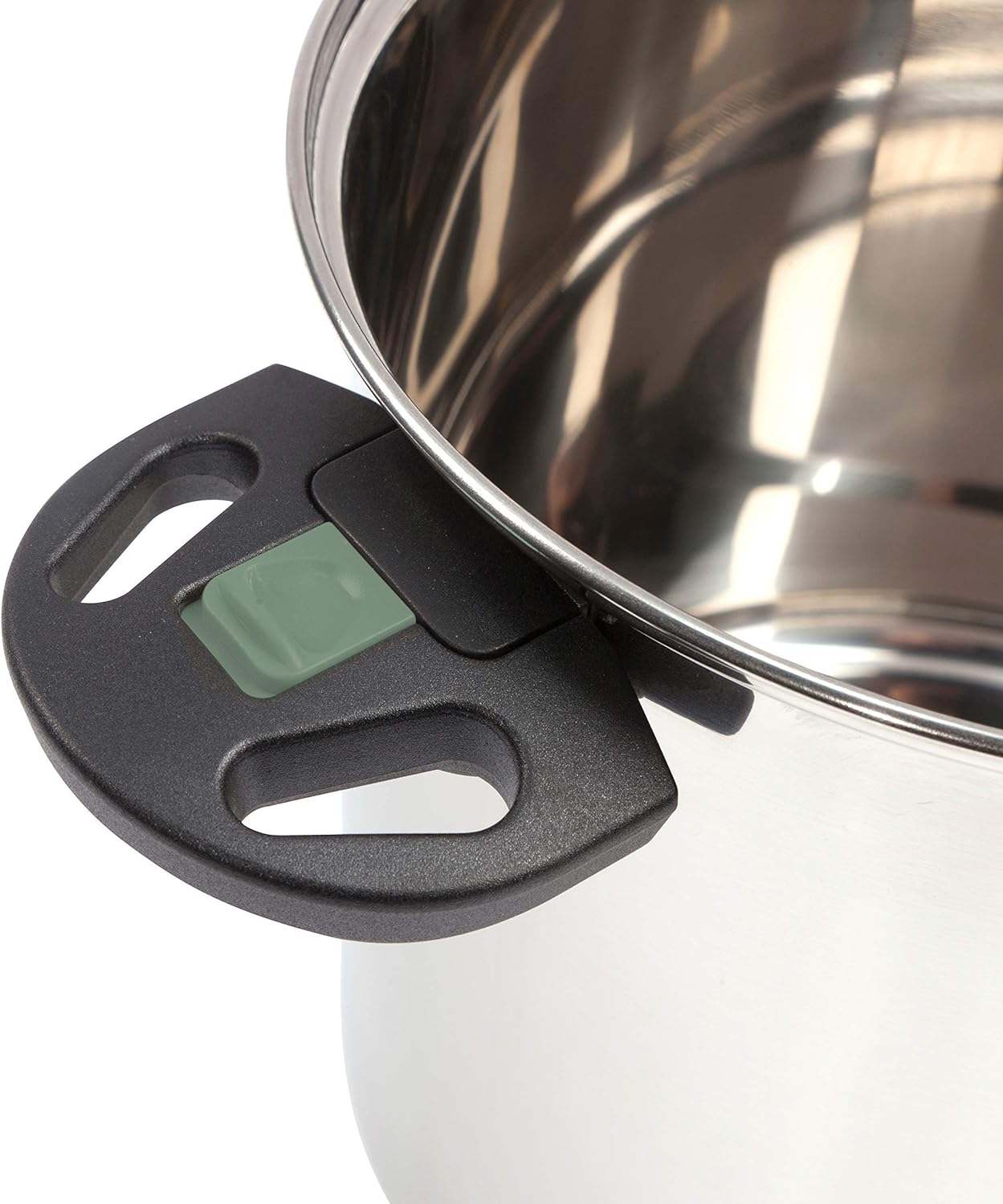 • Töpfe aus Edelstahl Rostfrei mit der hitzebeständige Griffe und aufklappbare