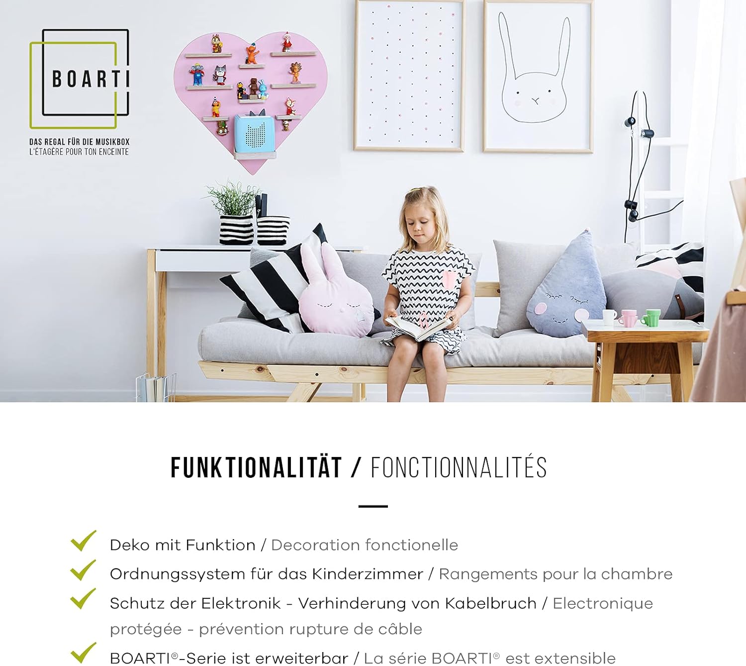 - PRAKTISCH: Mit BOARTI hältst Du das Kinderzimmer Deines Kindes immer aufgeräumt. Die Figuren haften magnetisch am Regal und die Box ist sicher eingefasst – kein Um- und Herunterfallen mehr!