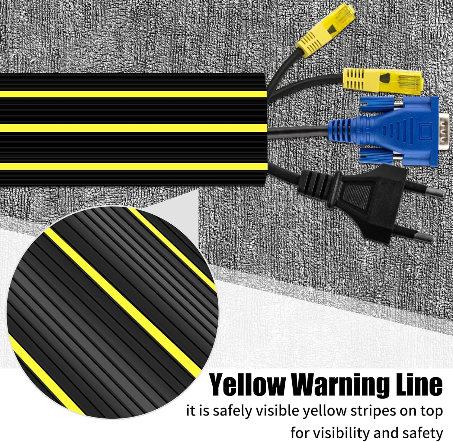 - ► Gelbe Warnlinie – gehen Sie sicher durch. Die Gummi-Kabelbodenabdeckung ist mit einer traditionellen schwarzen und gelben Farbe entworfen, die Menschen daran erinnert, auf dieses Zeichen zu achten und im Falle eines versehentlichen Stolperns bei