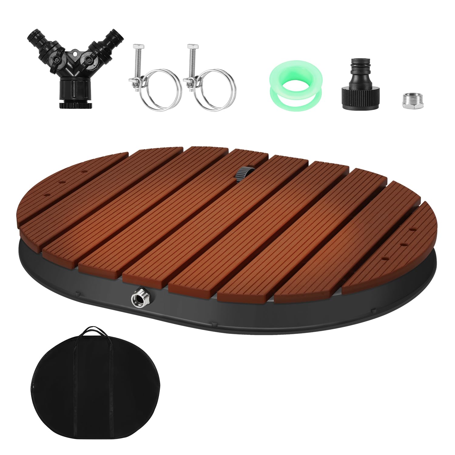 - 【Ästhetisch und Funktional】: Das ansprechende Holz-Kunststoff-Design der Gartendusche bietet eine rutschfeste Oberfläche mit klarer Textur und Massagefunktion; die WPC-Basis ist UV-beständig, rostfrei und schimmelfrei, und besticht durch hohe