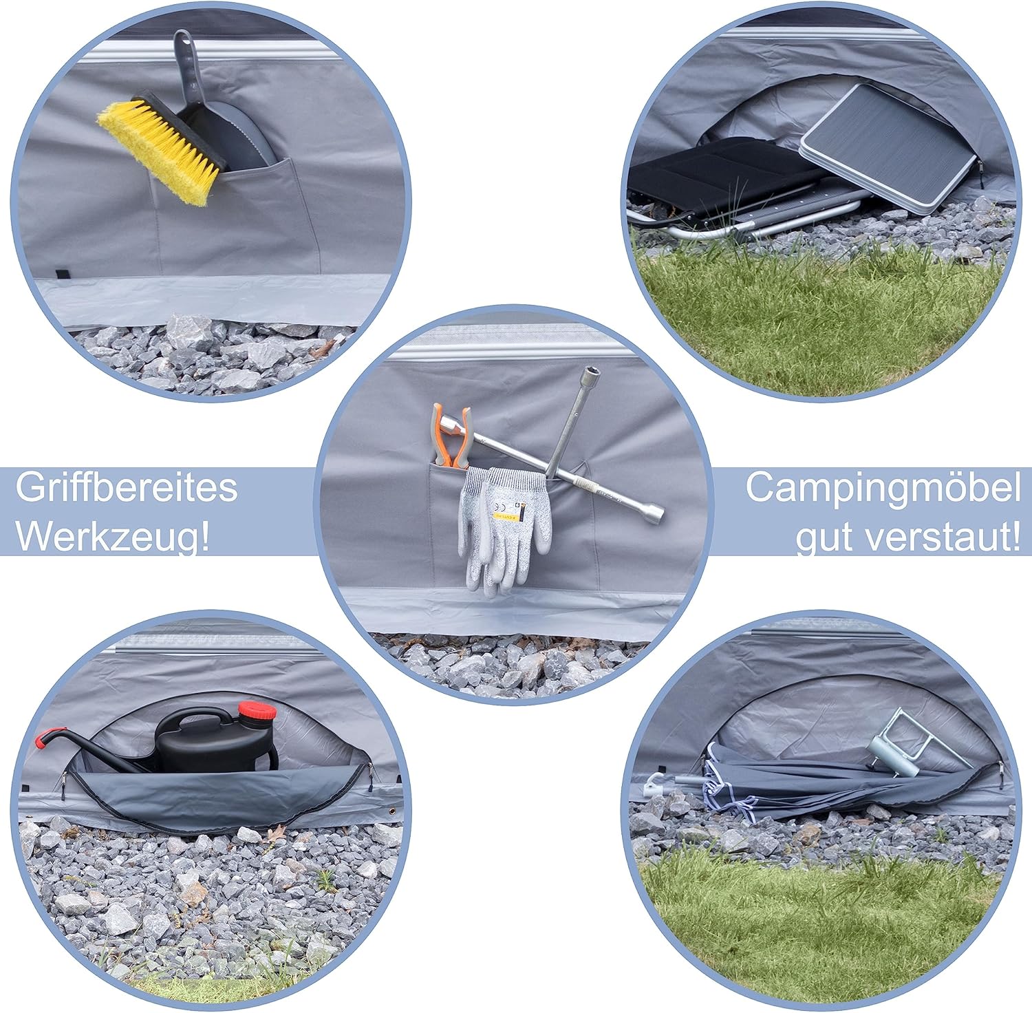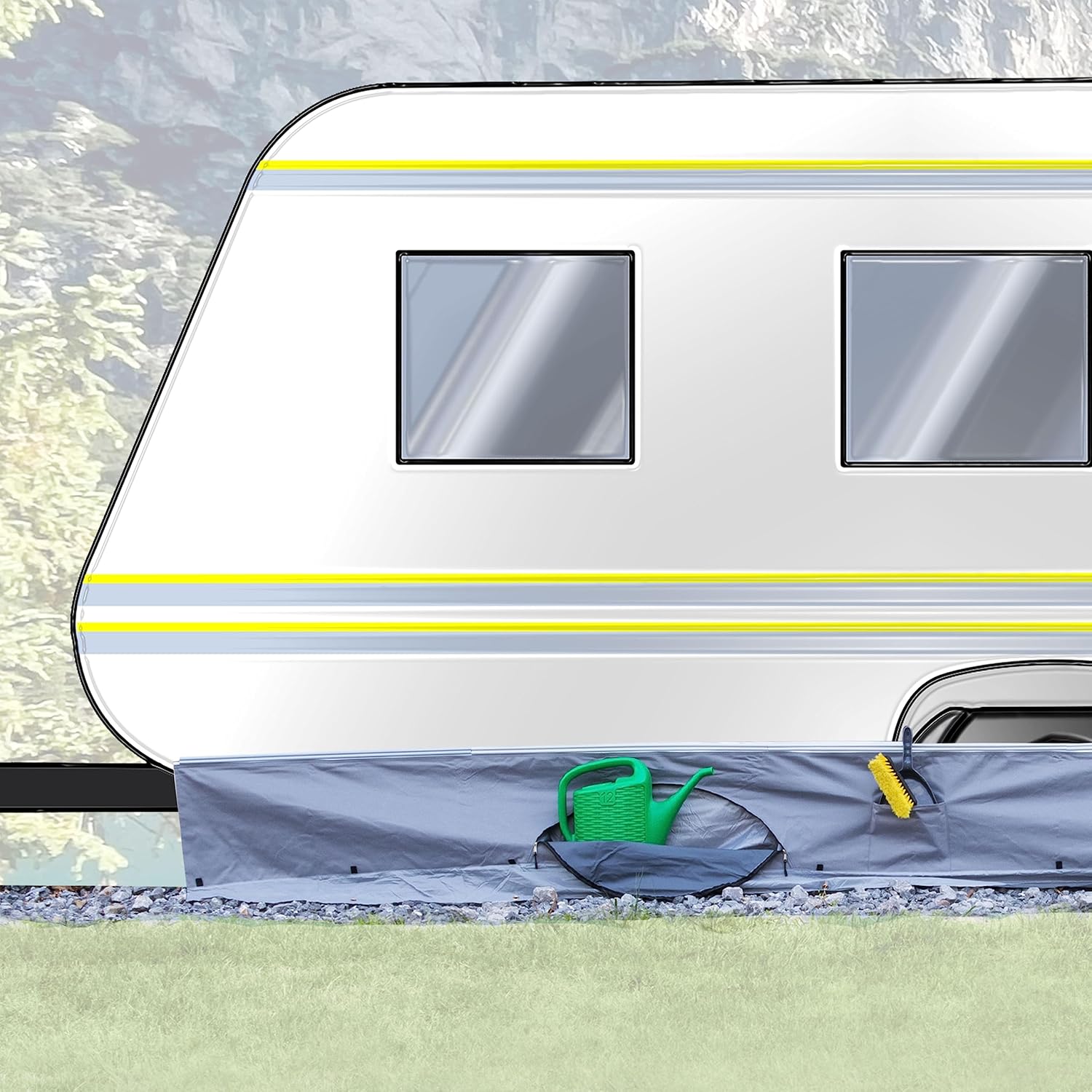 - ✅ BODENSCHÜRZE FÜR WOHNWAGEN 600x50CM: Schutz vor Zugluft, die unter dem Fahrzeug in das Vorzelt eindringt. Zusätzlicher Stauraum durch 2 grosse und 2 kleine Taschen.