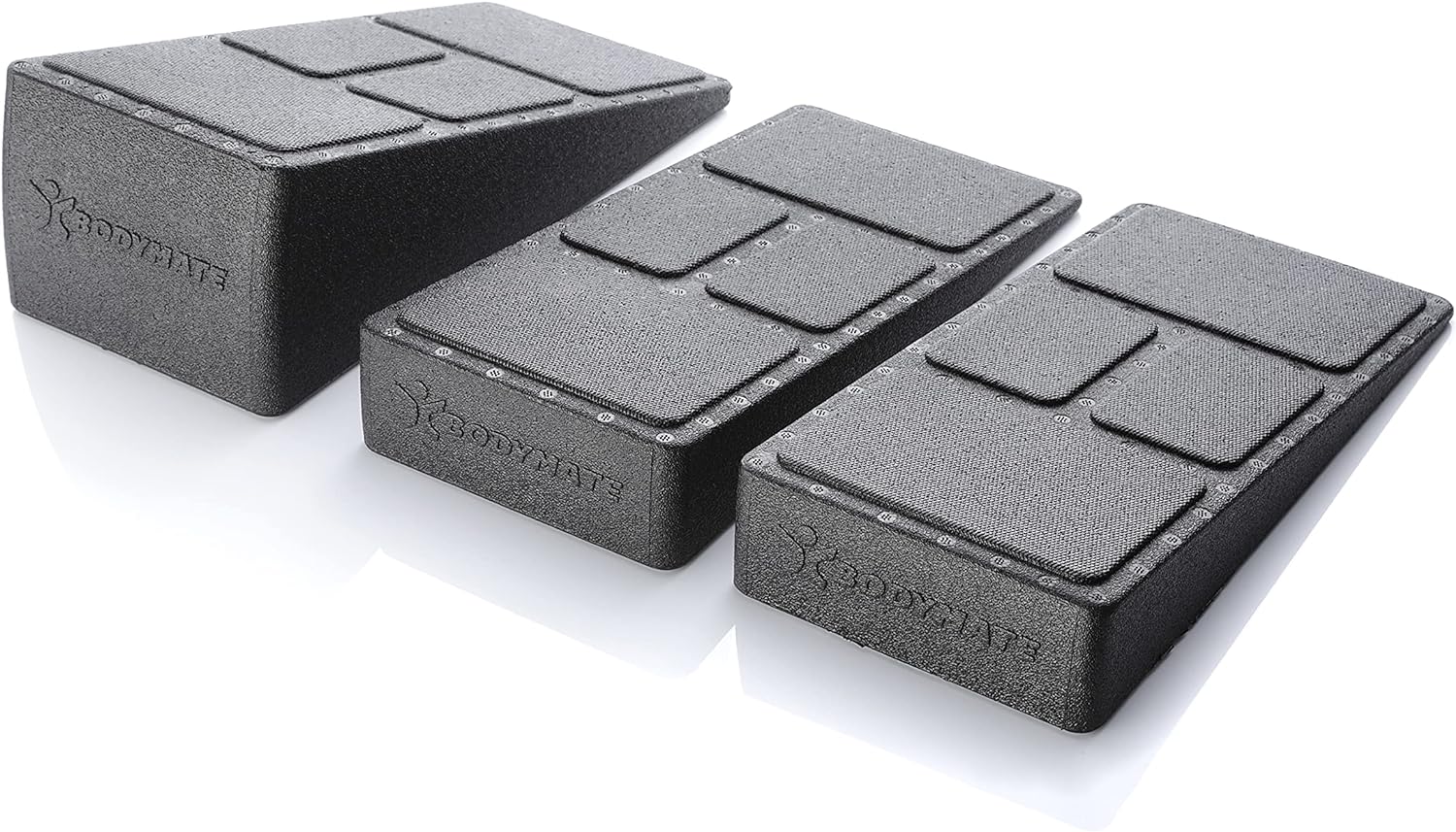 • FLEXIBLES SET - Das BODYMATE Wadendehner-Set besteht aus 2 kleinen Keilen mit je 9° Neigung und einem Keil mit 18° Neigung. Das Set ist für jedes Trainings-Level flexibel einsetzbar.