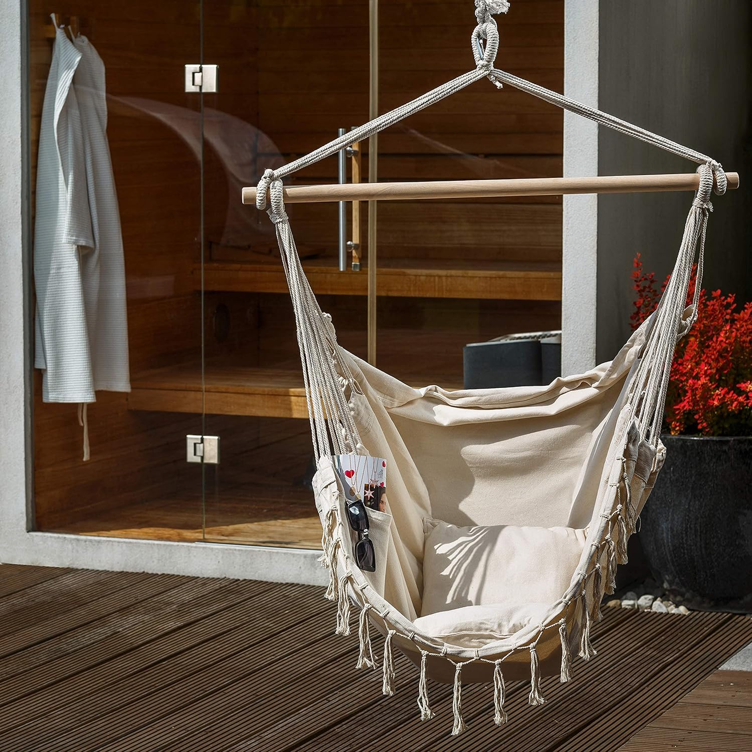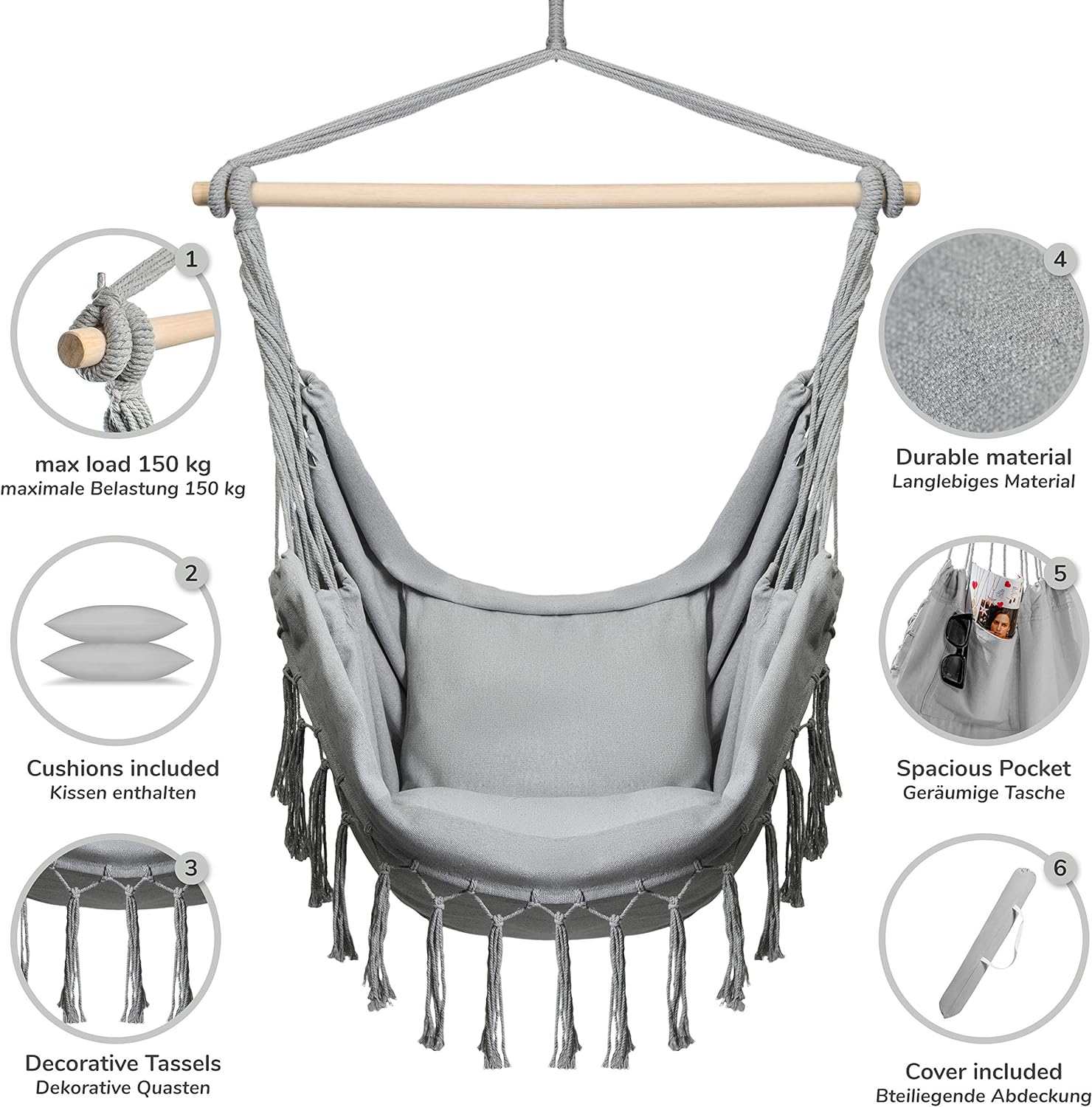 - MULTIFUNKTIONAL – Wir können den Stuhl zu Hause, ausserhalb der Stadt, im Park, während eines Musikfestivals und an anderen Orten verwenden, an denen er sicher befestigt werden kann. Ein hängender Sitz ist ein häufiges Element von Strandbars und