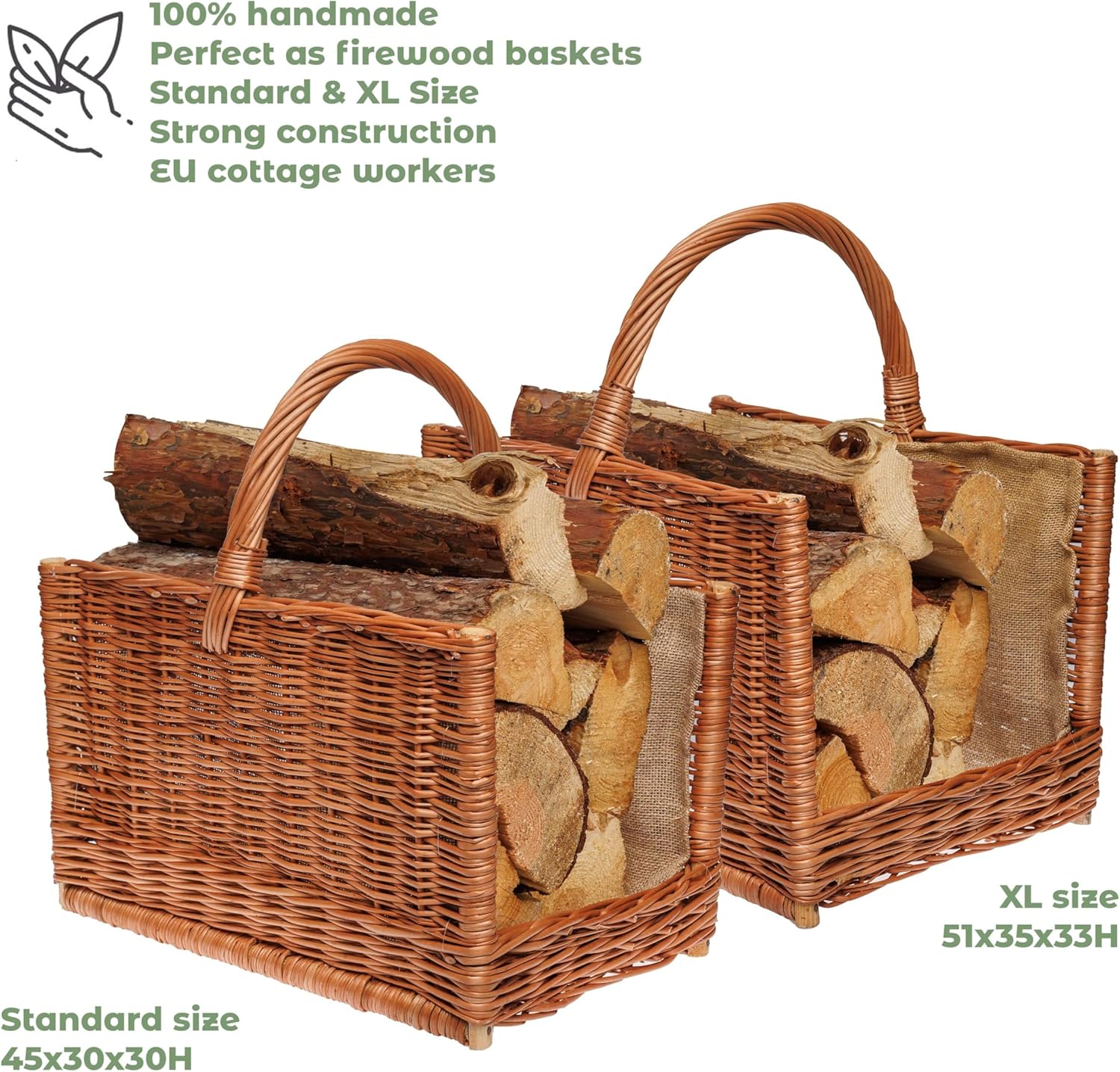 BOGATECO Weidenkorb mit quadratischem Griff | Grosser Kaminkorb 51X35X33 | Handgewebt | Mit Jute aus
