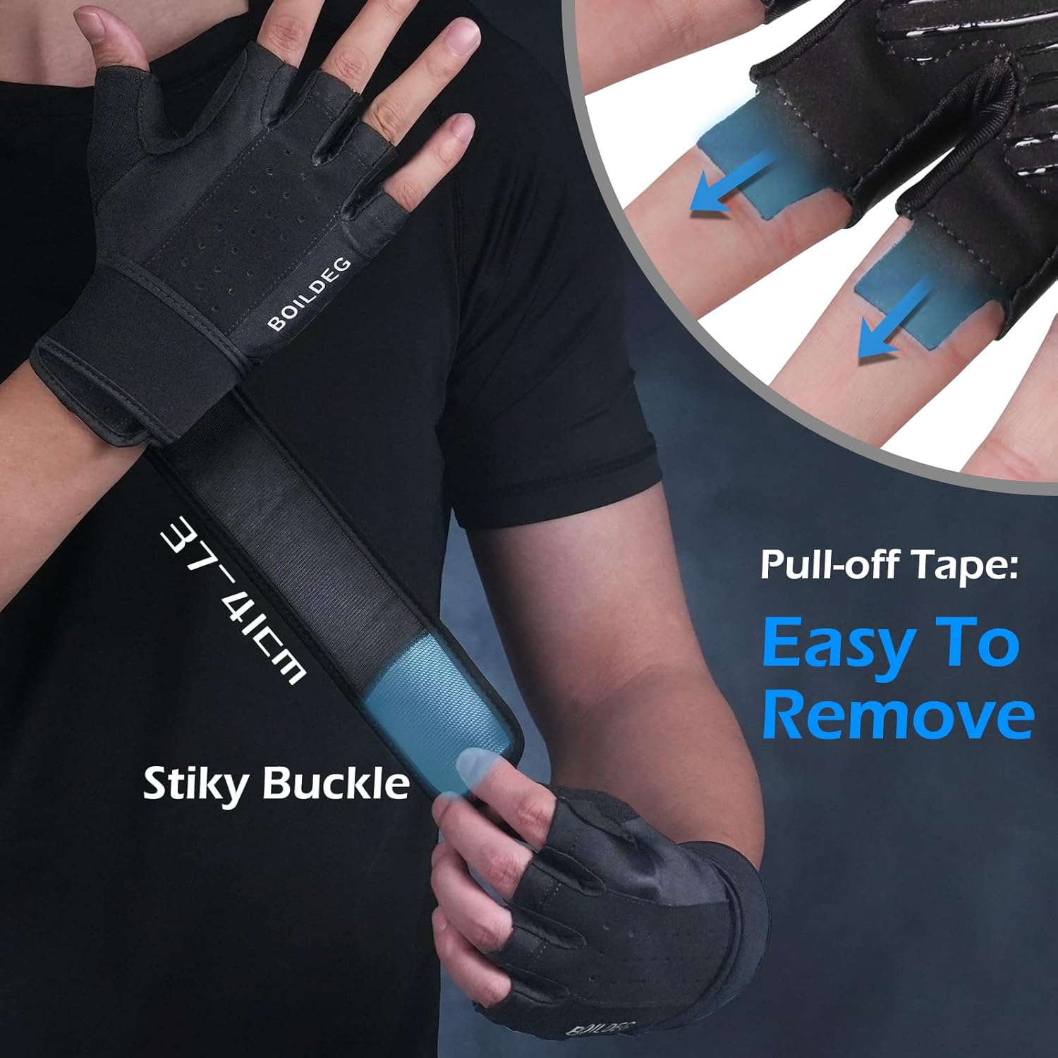 - đ„KOMFORT & LICHT: Mit Zuglaschen an den Fingern lassen sich die Boildeg-Turnhandschuhe leicht ausziehen. Ausserdem können Sie mit Frottee auf der RĂŒckseite des Daumens leicht Schweiss auf Ihrem Gesicht abwischen. Das Gewicht eines einzelnen
