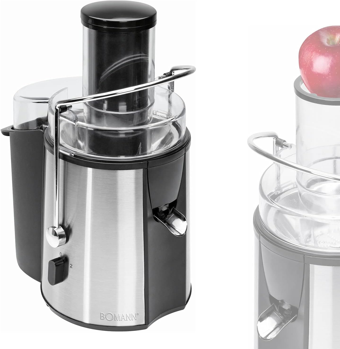 Bomann Elektrischer Entsafter aus Edelstahl für Obst, Gemüse, Weizengras, Ingwer (1000 Watt, 2 Liter