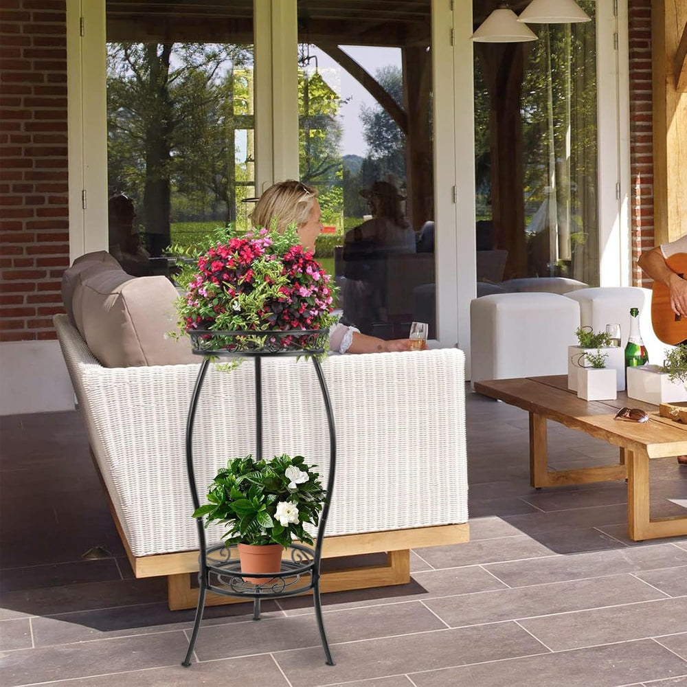 - Einfach zu bedienen -- Bomclap Pflanzenständer ist leicht genug, um leicht zu bewegen, wo Sie es zu platzieren möchten. Mit einer schwarzen Pulverbeschichtung, die Rost und Korrosion verhindert, ist der 2 Ebenen Pflanzenständer perfekt für Innen- und Aussengärten.