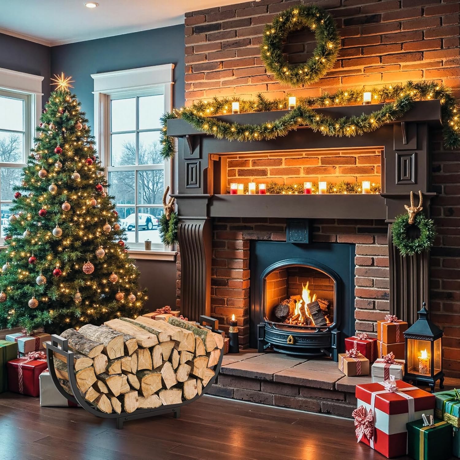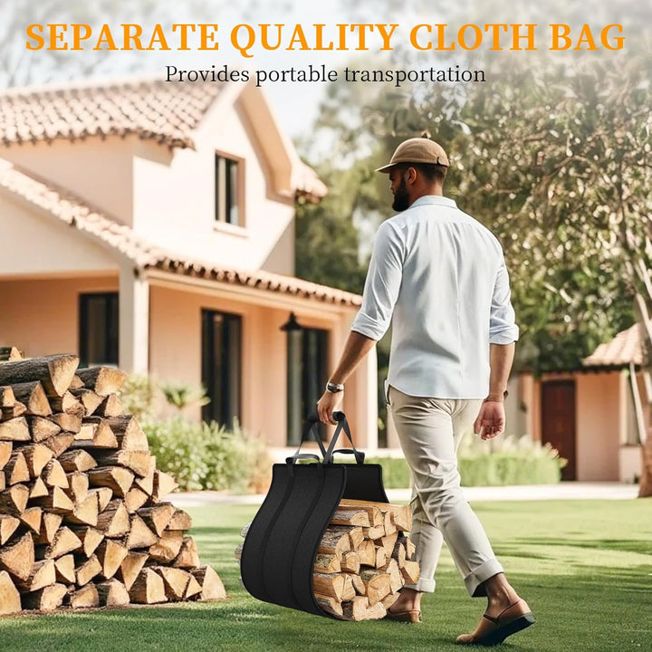 - Wird mit Abnehmbarem Kaminholztasche: Der im Paket enthaltene Kaminholztasche kann separat verwendet werden, was für Sie bequem ist, um Brennholz vom Lagerplatz zum Regal zu transportieren, was Zeit und Arbeit spart. Auch ideal für Campingausflüge.