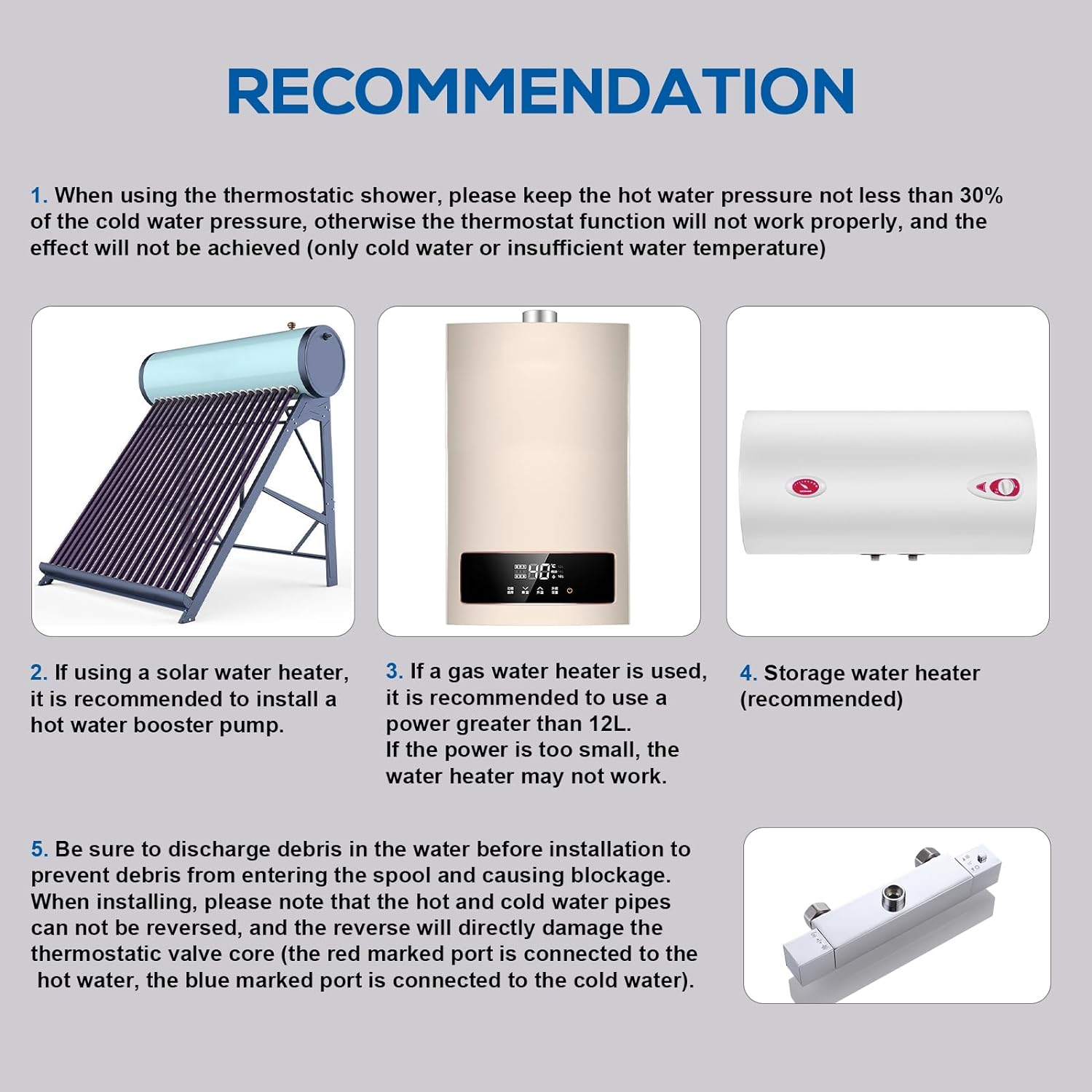- 【38℃ Duschsystem mit Thermostat】: Duschsystem mit Thermostat ist in der Lage, die Wassertemperatur konstant auf 38°C zu halten und verhindert so plötzliche Schwankungen zwischen heissem und kaltem Wasser. Nach dem Einstellen der Wassertemperatur
