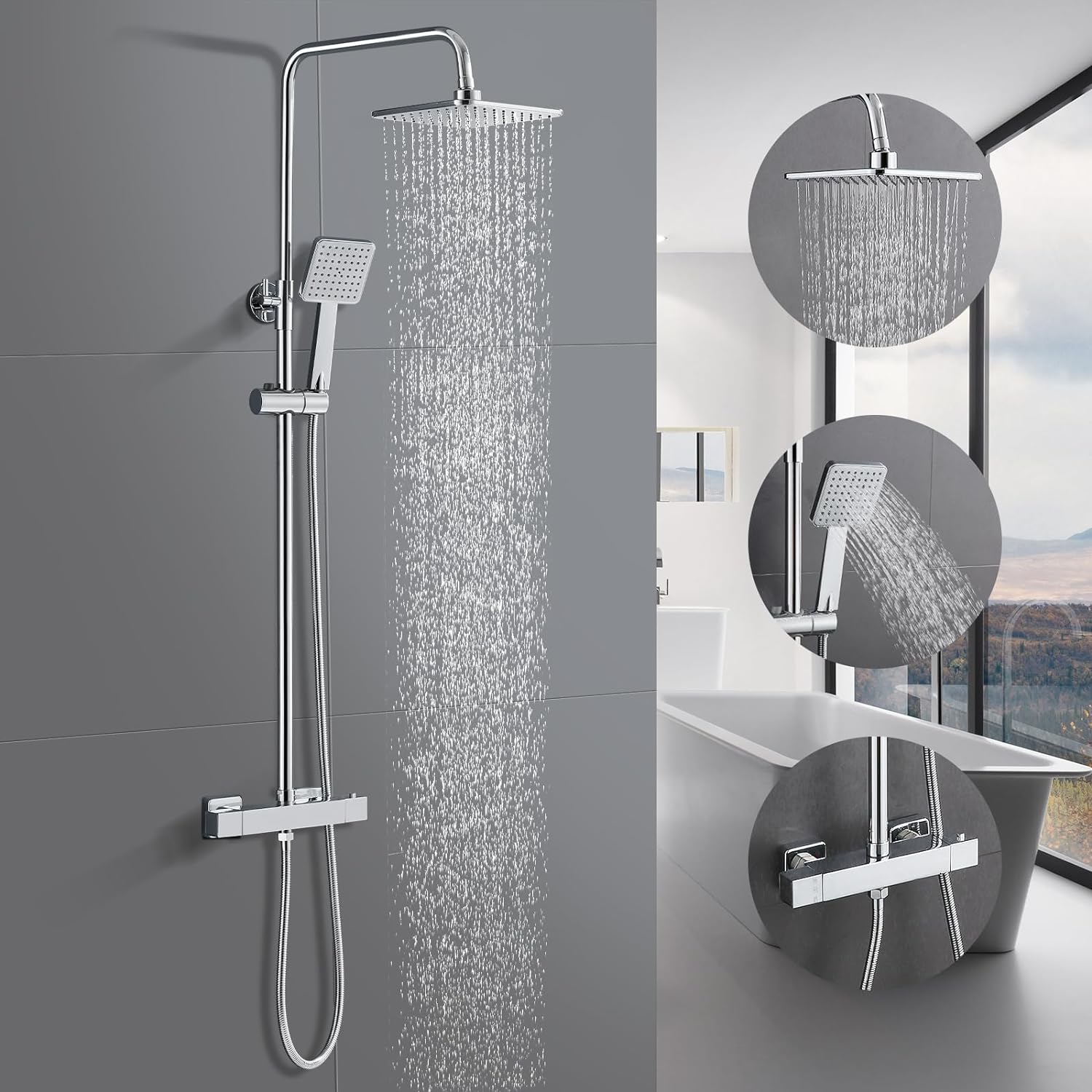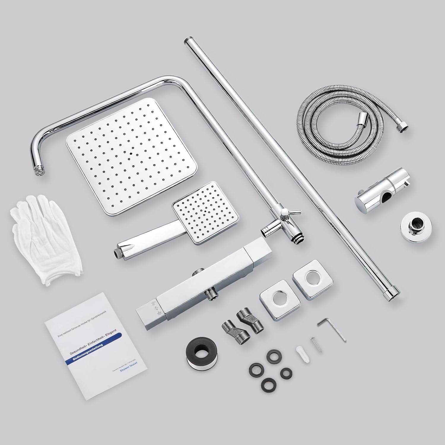 - 【Neues Design】: Duscharmatur Komplettset mit quadratischem Thermostatkörper, Chrom-Oberflächenbehandlung sieht modischer und schöner aus, jedes Mal, Geniessen Sie jedes Mal ein luxuriöses und persönliches Duscherlebnis, wenn Sie einsteigen.