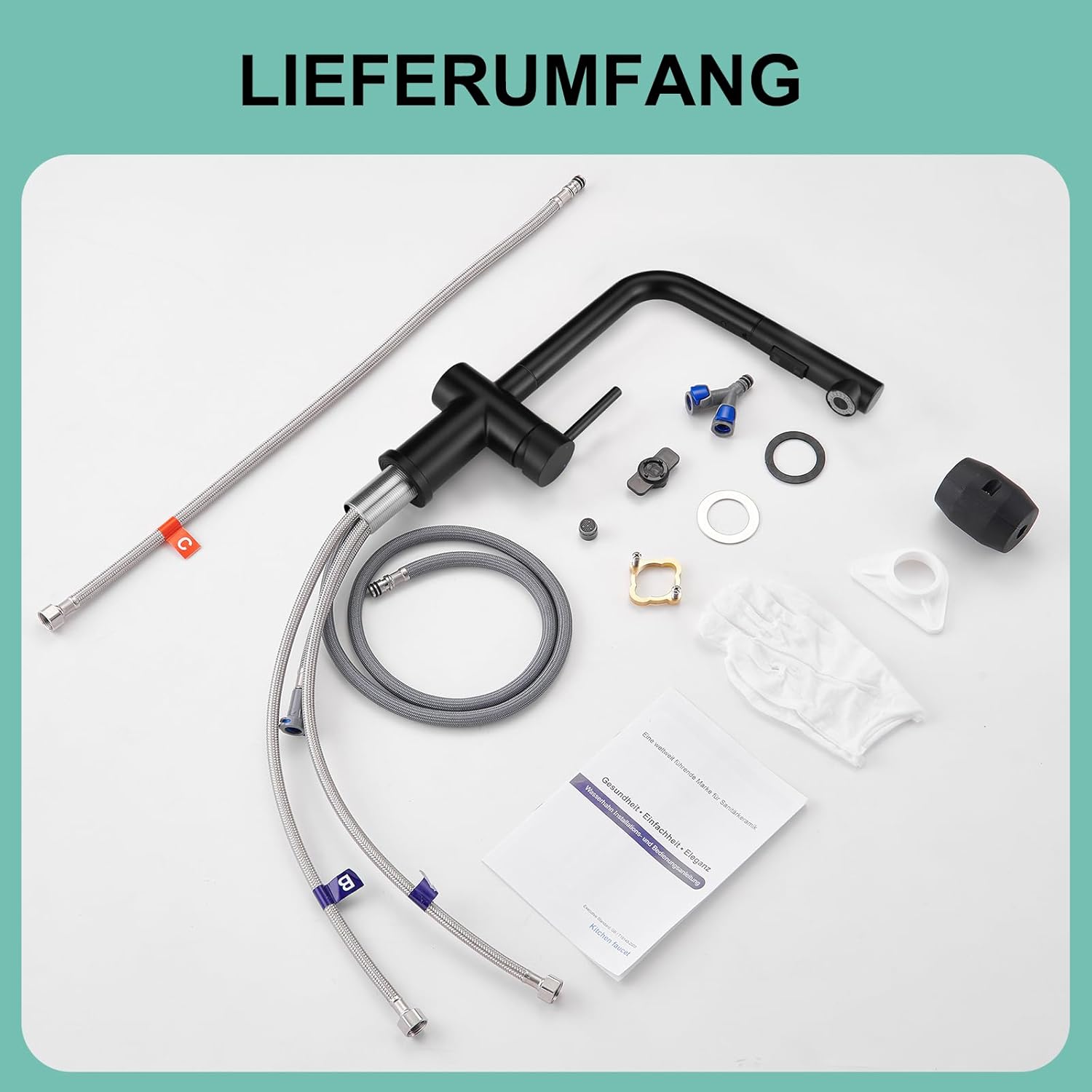 - 【NIEDERDRUCK ARMATUR KÜCHE AUSZIEHBAR】Die Niederdruck Armatur Küche verfügt über 3 Anschlüsse mit 3/8-Zoll-Standardanschlüssen und ist DVGW-zertifiziert. Der Wasserhahn Küche Niederdruck ist für Boiler geeignet, die Sie getrost verwenden