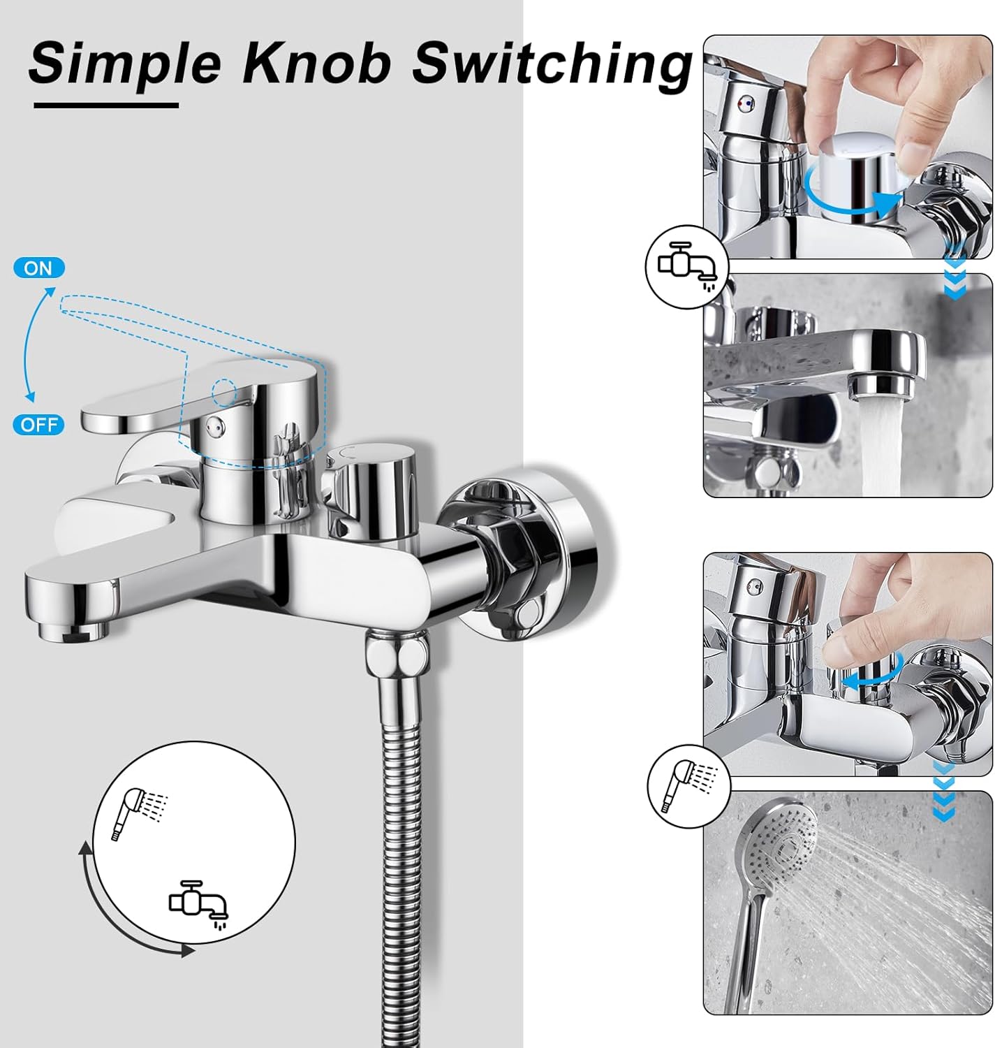 - 【Angenehme Toggle-Funktion】Drehen Sie den Knopf am Wasserhahn, Sie können problemlos zwischen dem Badewannenarmatur und der Handbrause wechseln. Der an die Brause angeschlossene Schlauch ist bis zu 150 cm lang und somit überall am Körper gut zu