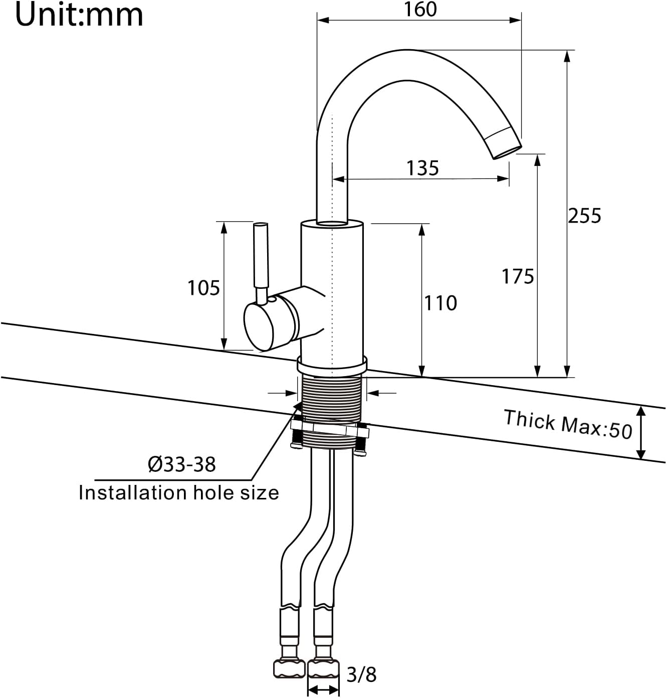 • 💧 Einfache Installation - Die Mischbatterie Waschbecken wird mit detaillierten Installationsanweisungen geliefert. Für die Installation sind kaum Werkzeuge erforderlich, Sie müssen also kein Klempner sein, jeder kann unsere Armatur Bad anschliessen